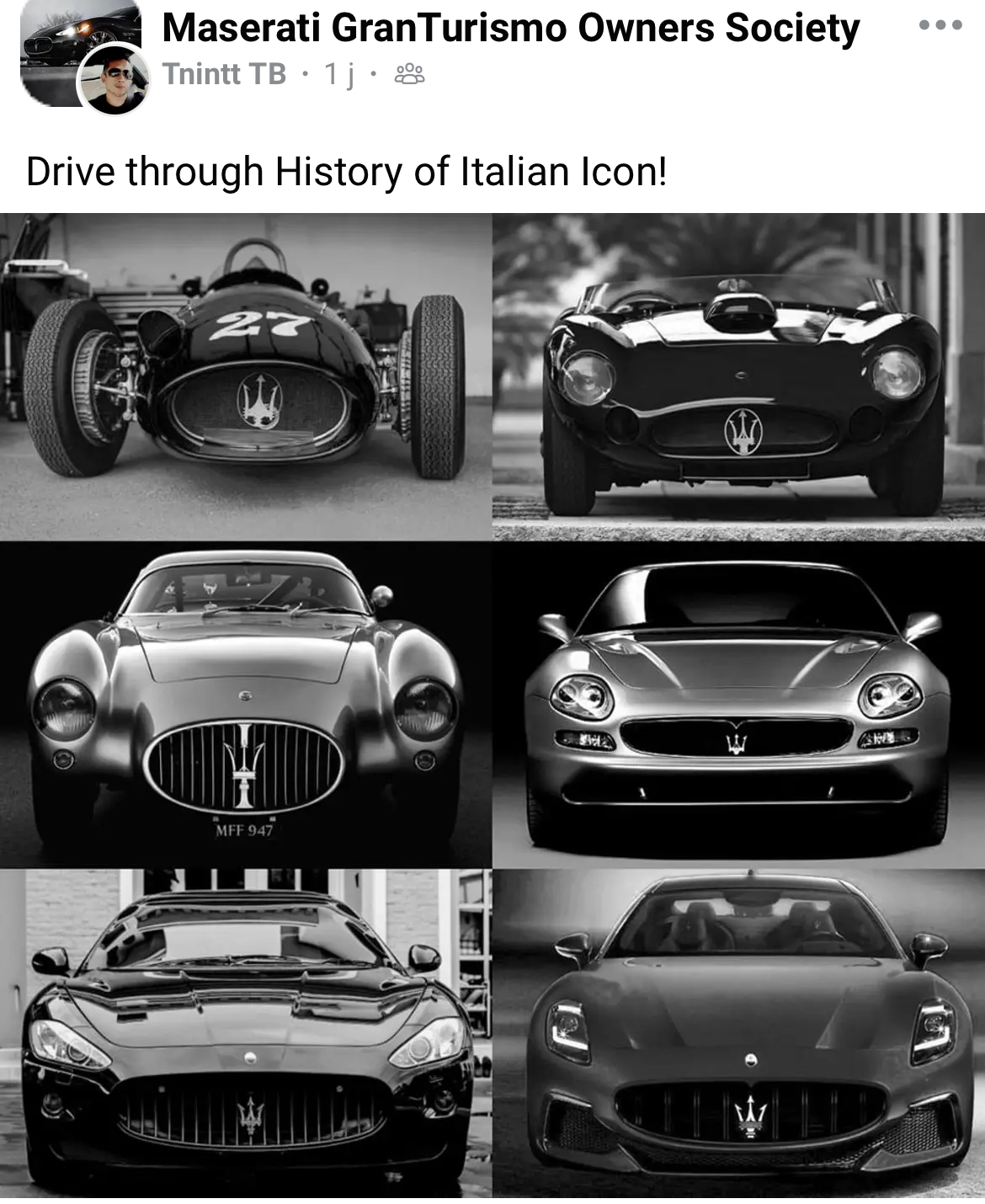De haut en bas et de gauche à droite : 250F, 450S, A6GCS/53 Berlinetta Pininfarina, 3200GT, GranTurismo, nuova GranTurismo.