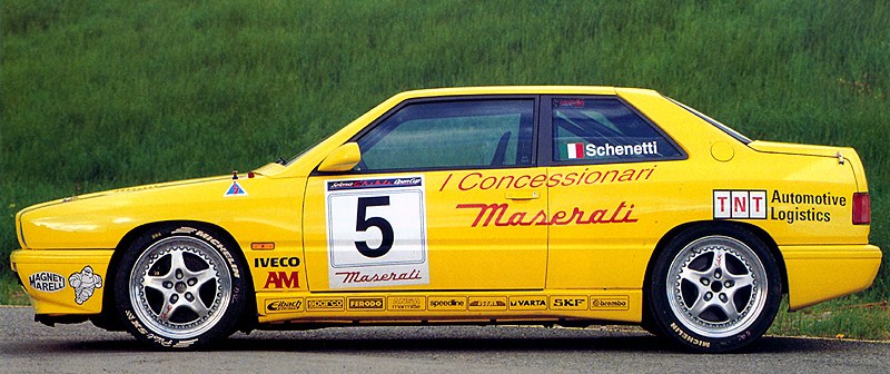 La Ghibli Cup 2.8 litres de Gemini. Noter les rétroviseurs rabattables de la Model Year 94.