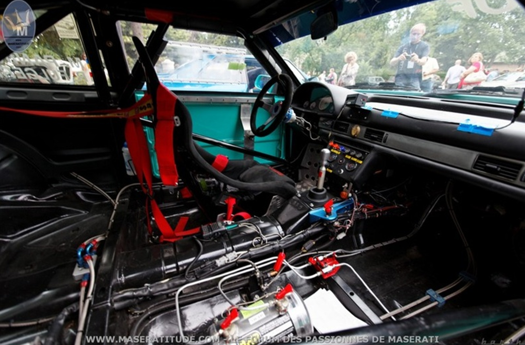 Mon ami Maxime Joly dans l"automobile sportive" nous précise que " la Ghibli Open Cup, préparée chez Alfa Corse, était munie d'un arceau, d'un siège baquet Sparco avec harnais cinq points, d'un volant spécifique Momo, d'un levier de vitesse et de pédales en aluminium, d'un extincteur automatique, d'entrées d'air en carbone et pour la saison 1995 de jantes Speedline 17 pouces montées avec des slicks Michelin Pilot SX".