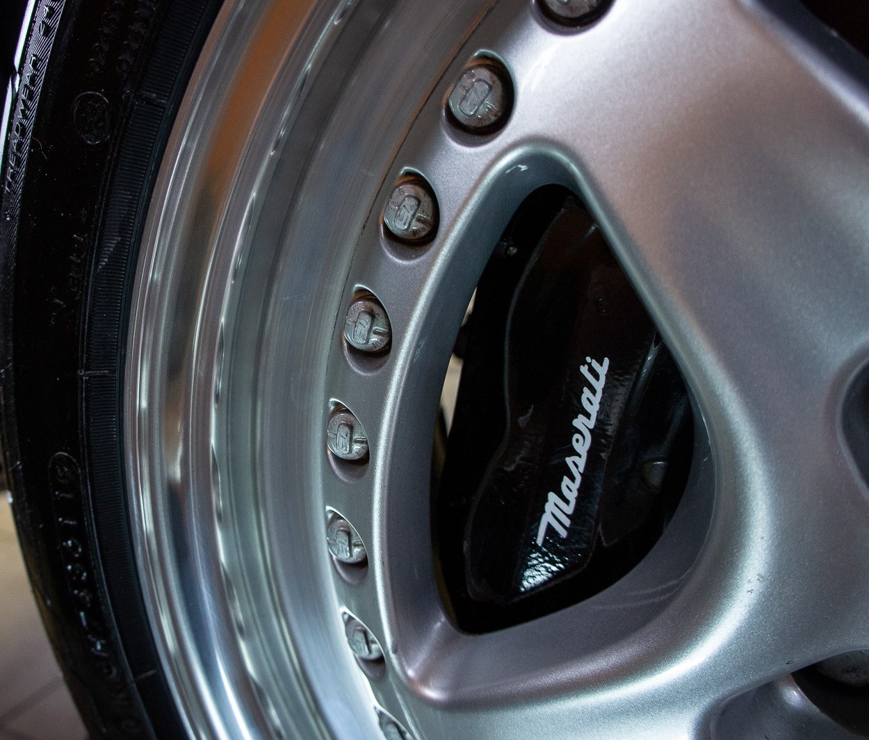 Extracteur grillagé, logo Maserati rectangulaire sur le volant, c’est une « non ABS » avec le Kit Sportivo !