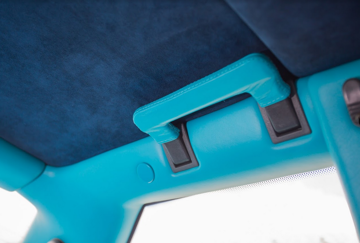 Les pédales en aluminium ajouré ne répondent que si vous avez des chaussures "yacht" ! Bon, au bout de 30 secondes, l'œil s'habitue et bientôt, on ne peut plus s'en passer ! Il y a une boîte de vitesses Getrag 6 vitesses, les amortisseurs réglables Koni, l’alcantara sombre sur le ciel de toit, et une sellerie tout cuir bleu clair-bleu sombre.