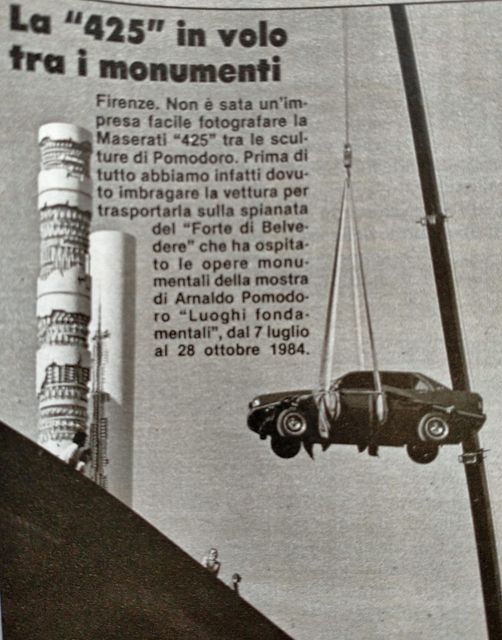 Pour la petite histoire, à noter aussi que durant sa première année de production, une 425 carbu rouge avait été exposée de juin à octobre 1984 en haut du Fort Belvedere à Florence avec les statues primitives d’Arnaldo Pomodoro. Il avait fallu hisser là-haut la 425 avec une grue :