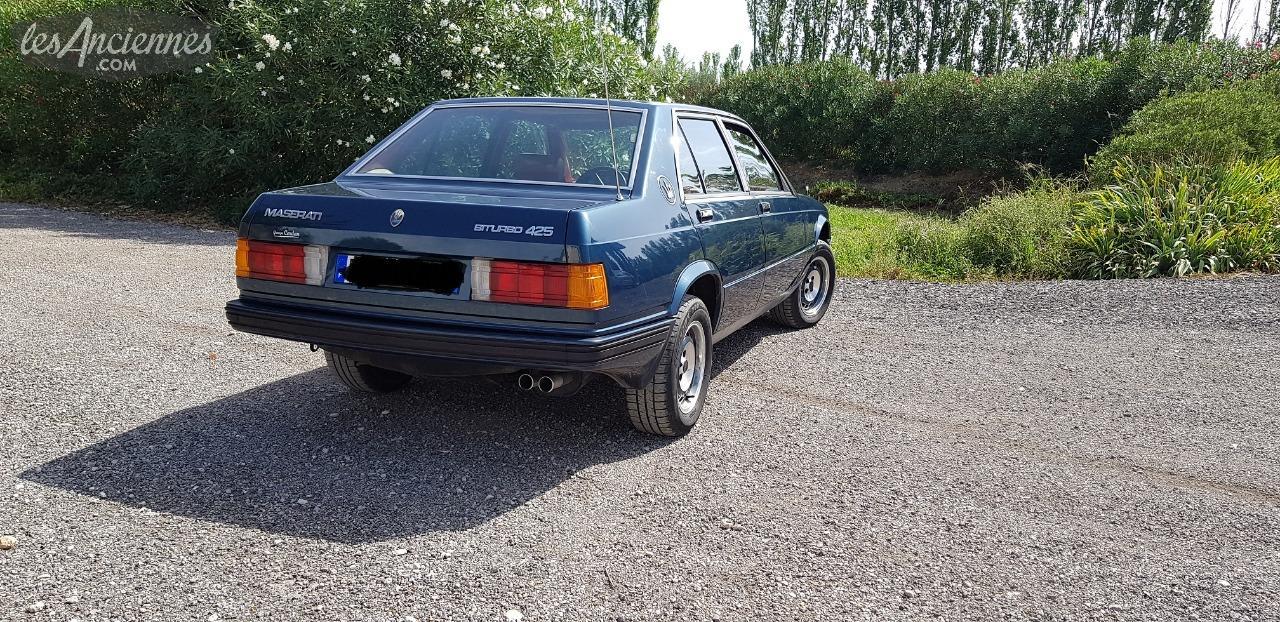 La berline 425 (pour 4 portes, 2.5 litres) fut présentée à la traditionnelle conférence de presse du 14 décembre 1983. Elle fut la toute première berline Biturbo. Dessinée comme le coupé Biturbo par Pierangelo Andreani, elle en reprenait un maximum de pièces (capot moteur, mécanique, trains roulants). Mais la berline gagnait 24 cm en longueur (4.39 m), 8.9 cm en empattement (2.60 m) et 6 centimètres en hauteur pour la garde au toit des passagers arrière (1.36 m). Elle demeurait cependant compacte, légèrement plus grande que la BMW série 3 à 4 portes, et ne fut pas gratifiée de l'appellation "Quattroporte" car la Quattroporte III était produite en parallèle des Biturbo jusqu'en 1990.