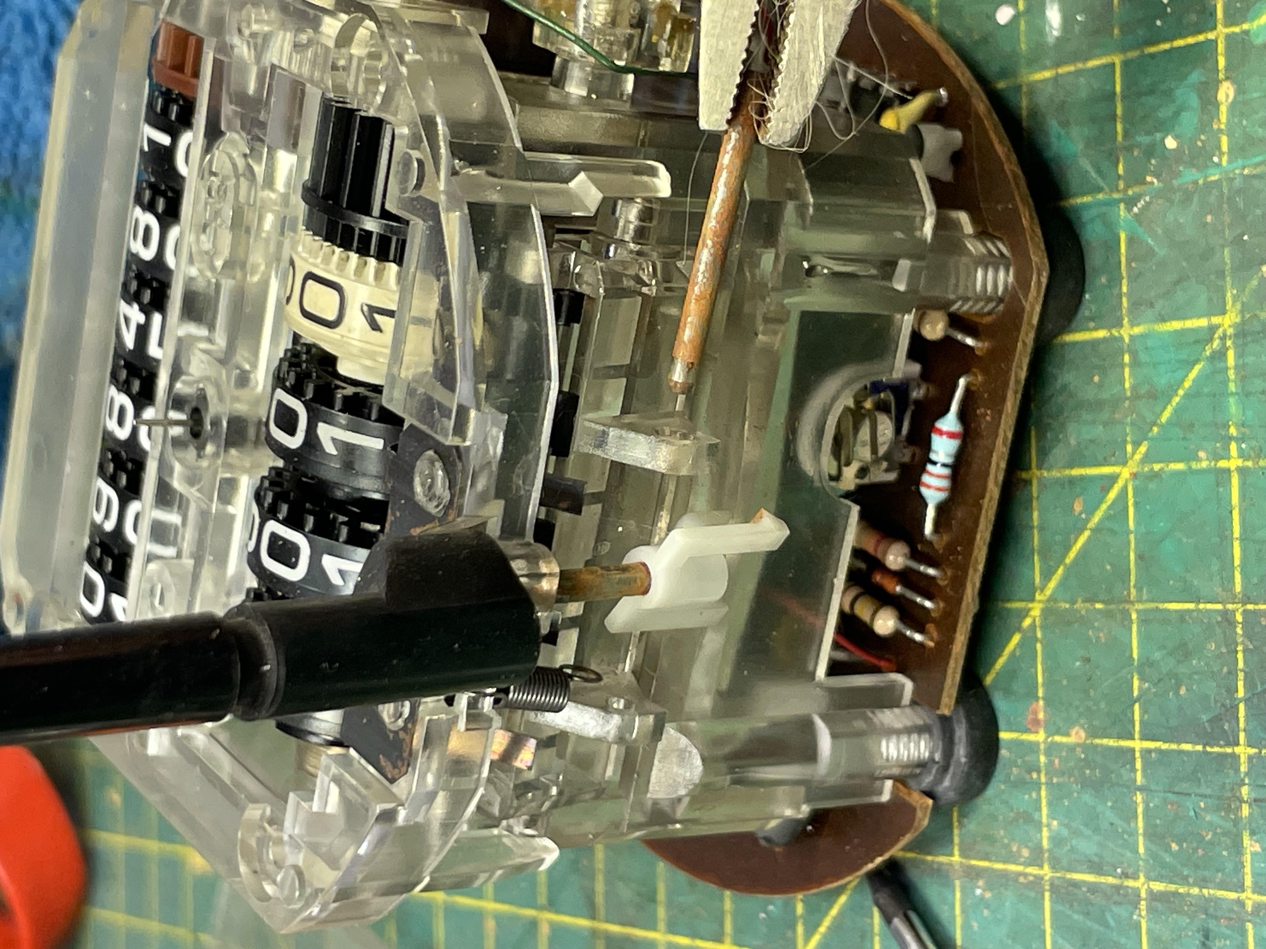 J’ai remarqué que mon compteur journalier, remis à zéro, ne passe pas le 1er kilomètre, il claque au passage du numéro 9, ce qui montre que le moteur électrique fonctionne et que le pb est mécanique dans les engrenages en plastique.