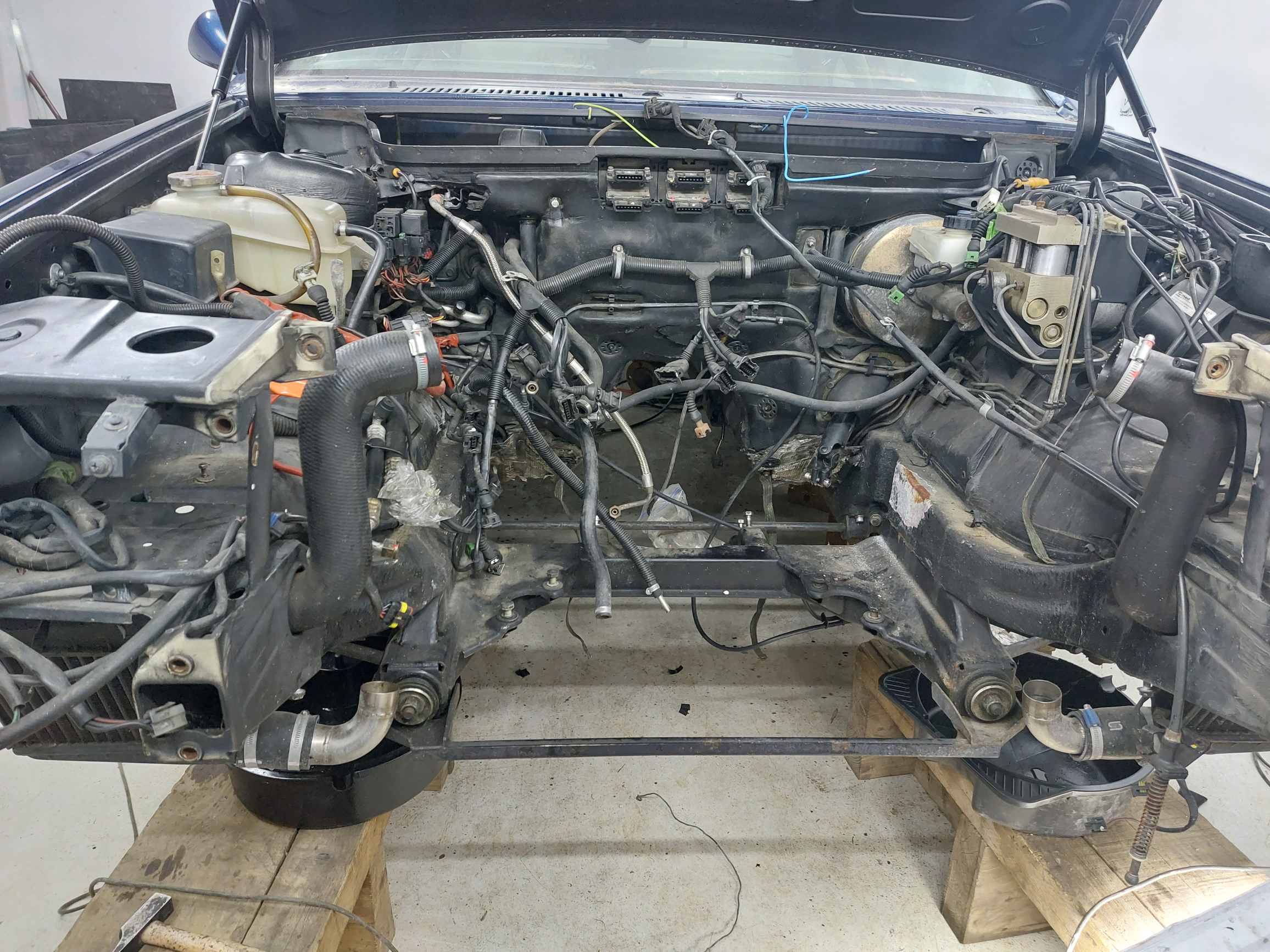 J'ai pris la sage décision de démonter l'intérieur pour vérifier l'état de la caisse avant d'assembler le nouveau moteur (un 2.5 24v). Sage parce que la caisse s'est avérée être assez pourrie malgré la peinture refaite, une jolie couche d'antigravillon et des tapis pas trop moches. J'en parlerai plus tard.