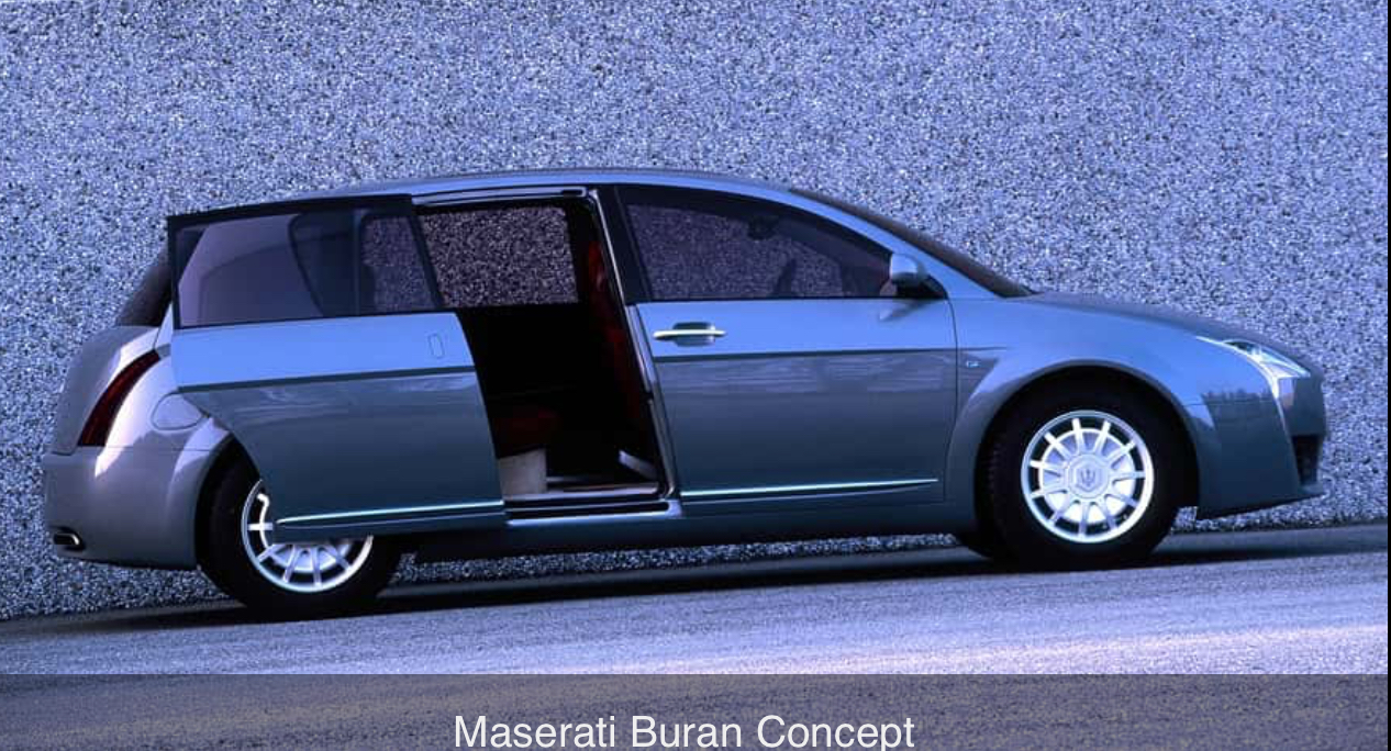 Giorgetto Giugiaro présenta en 2000 au salon de Genève une proposition de Monospace Maserati à 4 roues motrices avec une mécanique de 3200GTA automatique (mais à 5 vitesses alors que le coupé 3200GTA dispose de 4 vitesses). Ce fut la Buran, du nom d’un vent sibérien :