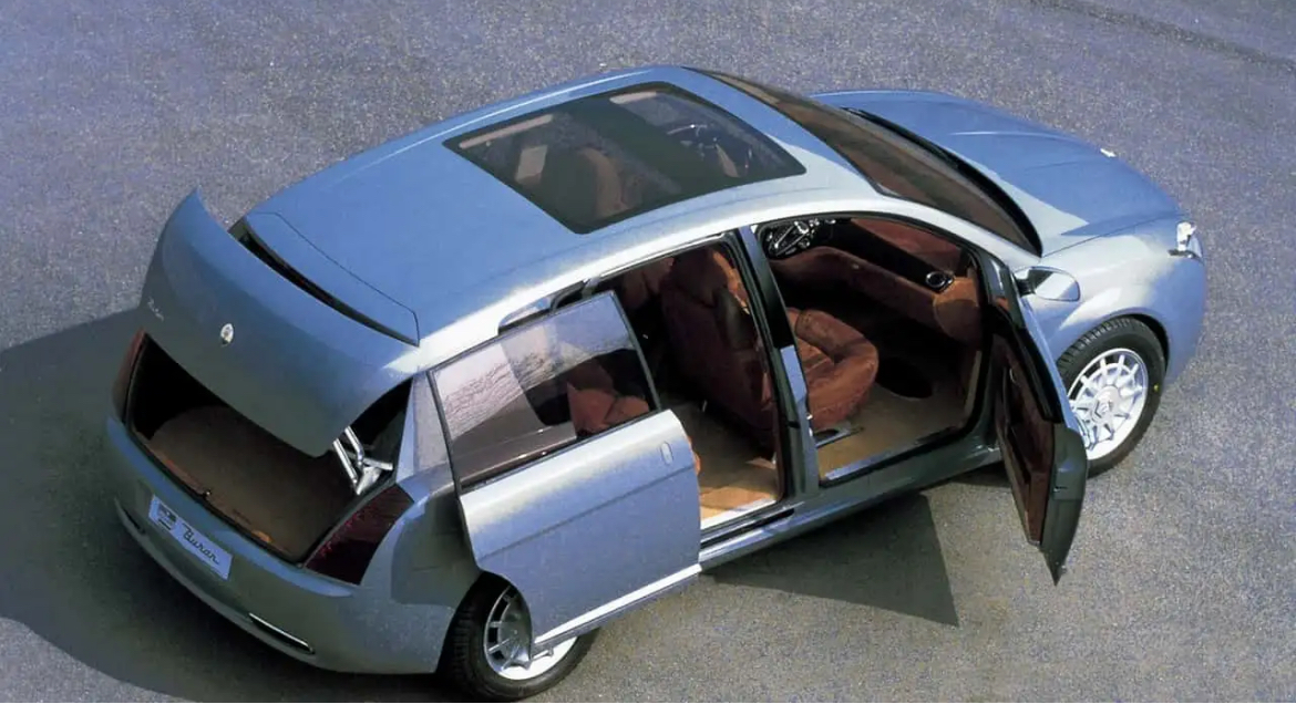 En effet si on cache l'écusson, j'aurais pu croire en une étude de style d'un monospace basé sur la lancia Thesis (ligne latérale et poupe m'y font penser)