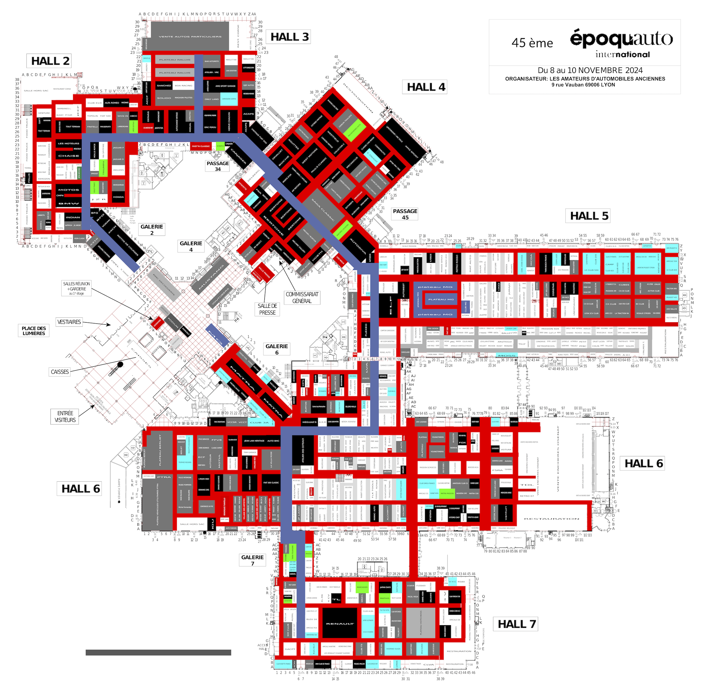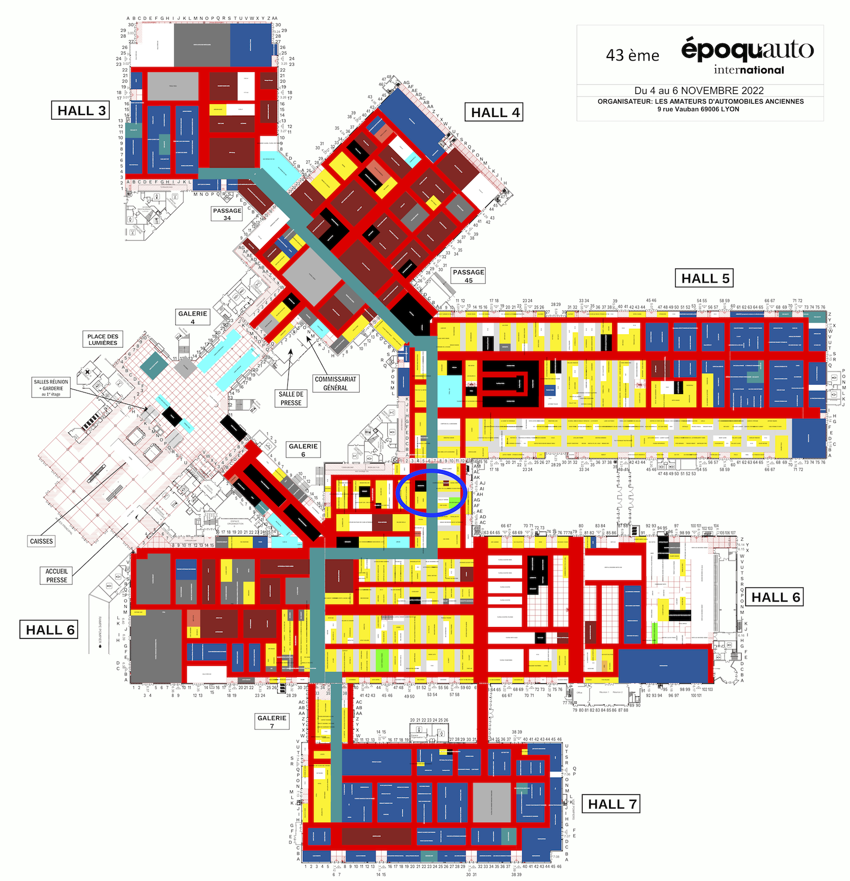 Plan général du salon (version 2022...), avec là ou les clubs "italiens" -entre autres- vont se trouver cette année.