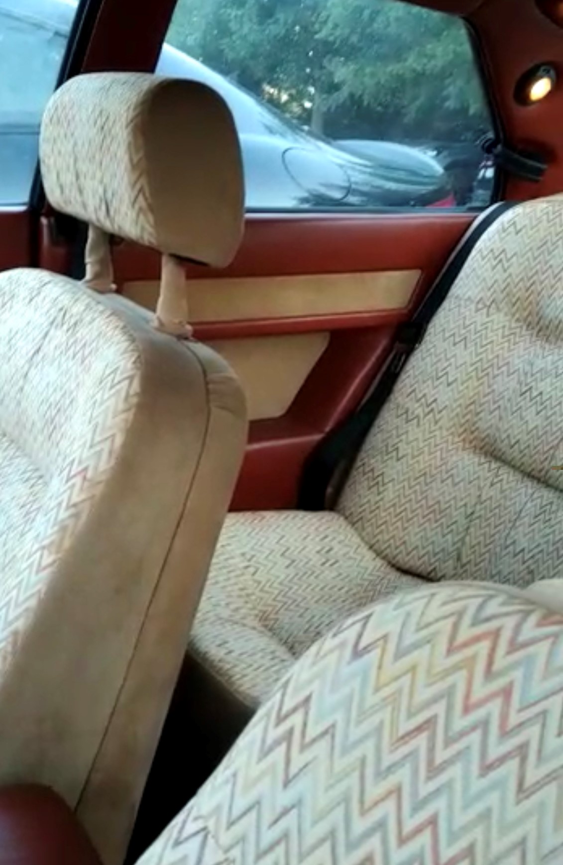 Le lien avec la mode, c’était le couturier Missoni qui avait déjà signé le beau velour intérieur « maron glacé » de la Biturbo de base (qui se mariait avec toutes les couleurs de carrosserie) et proposait en 1983 un tissu assez clair à chevrons pour la Biturbo S :