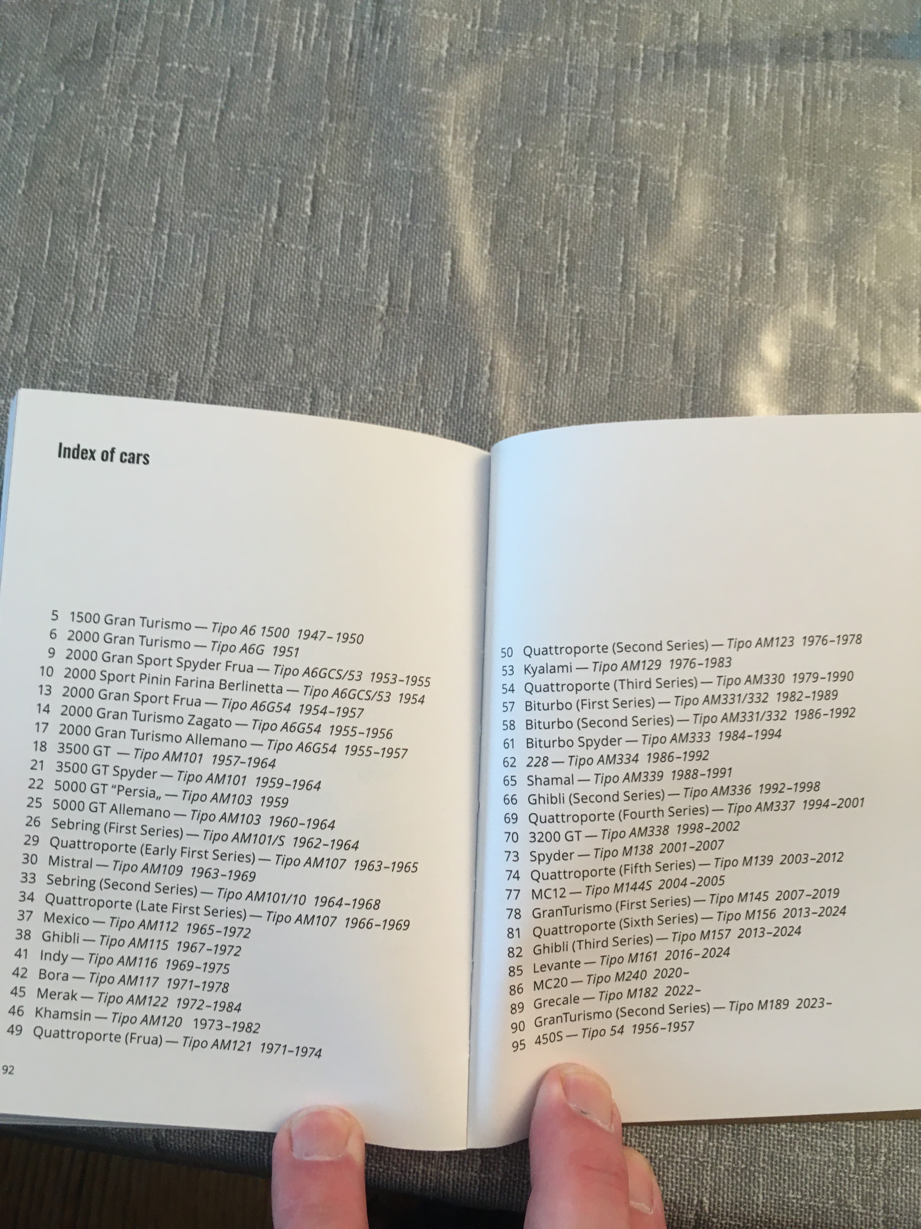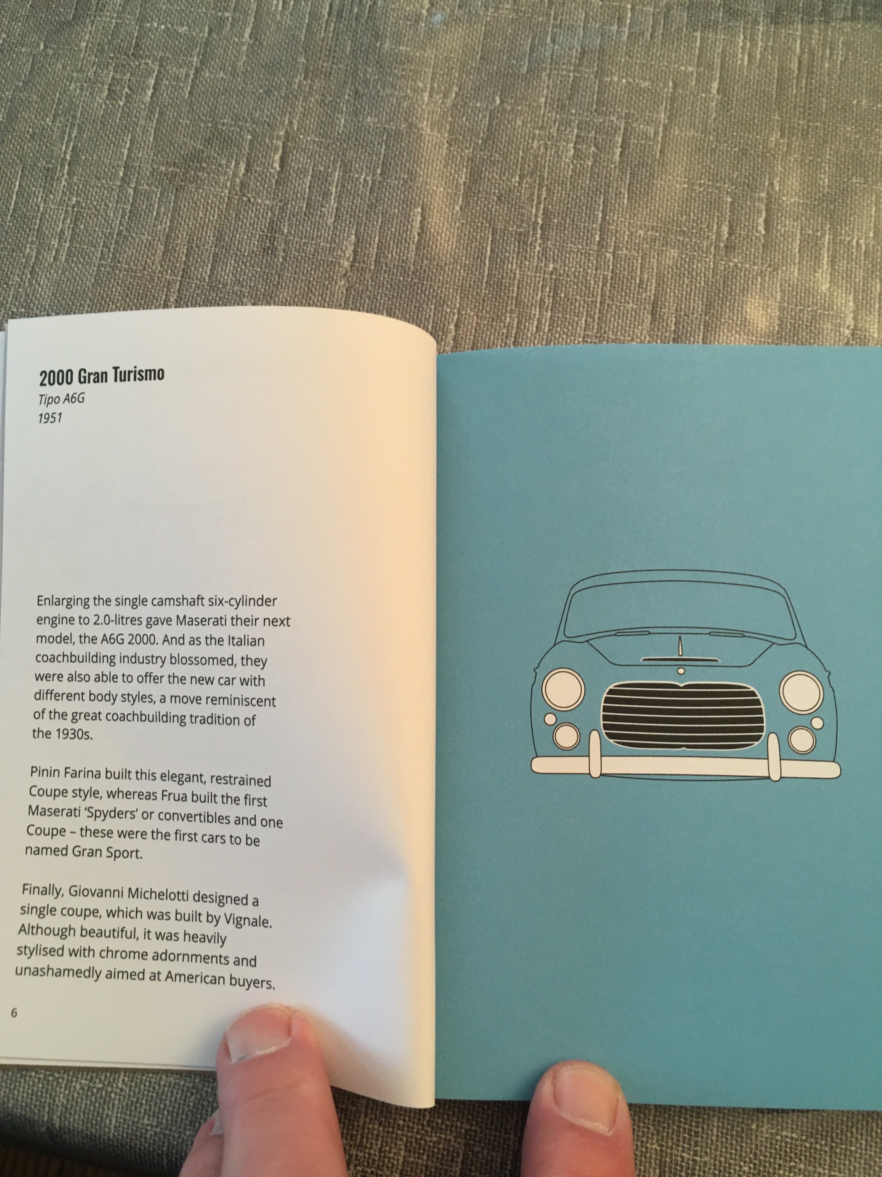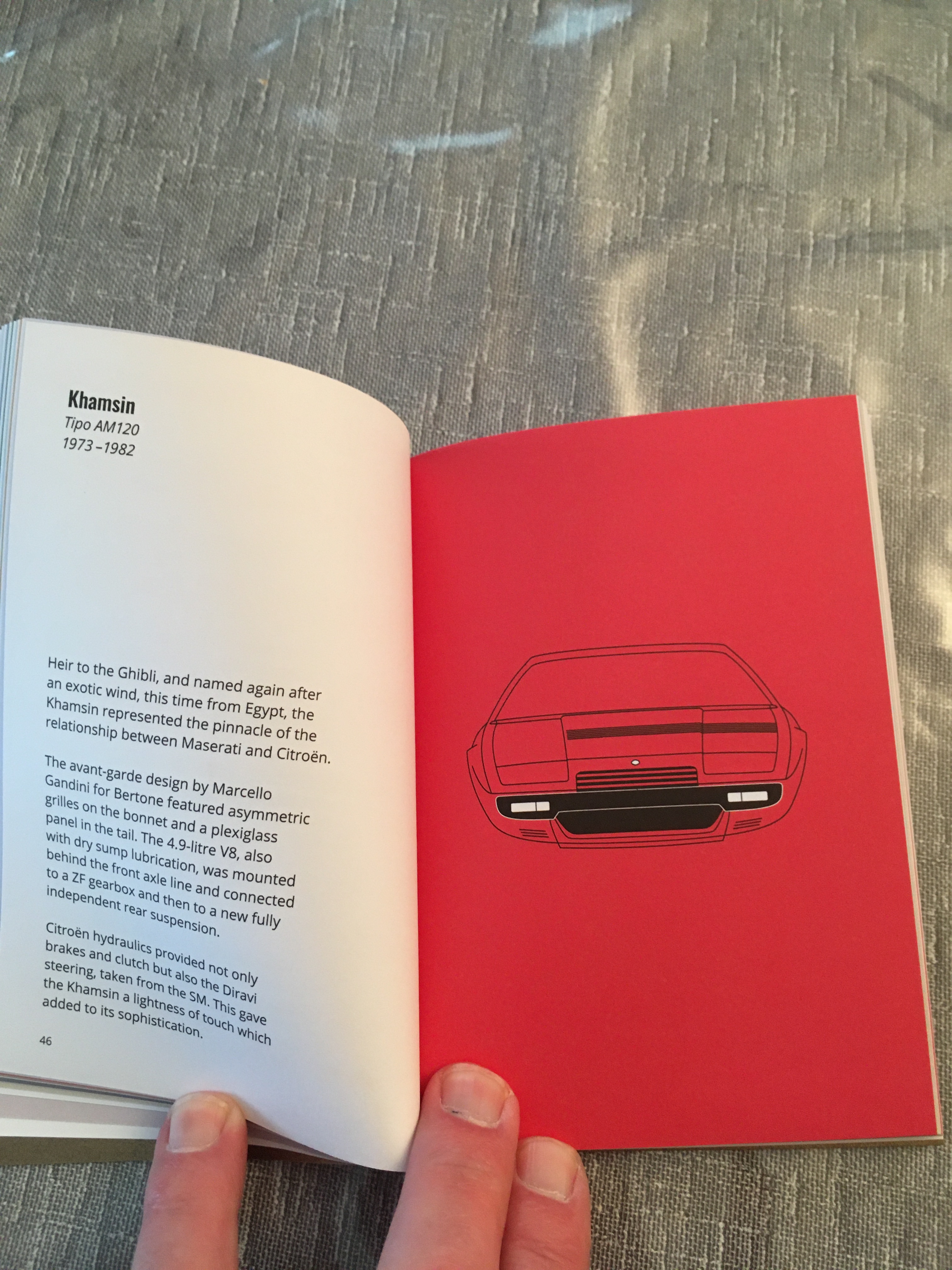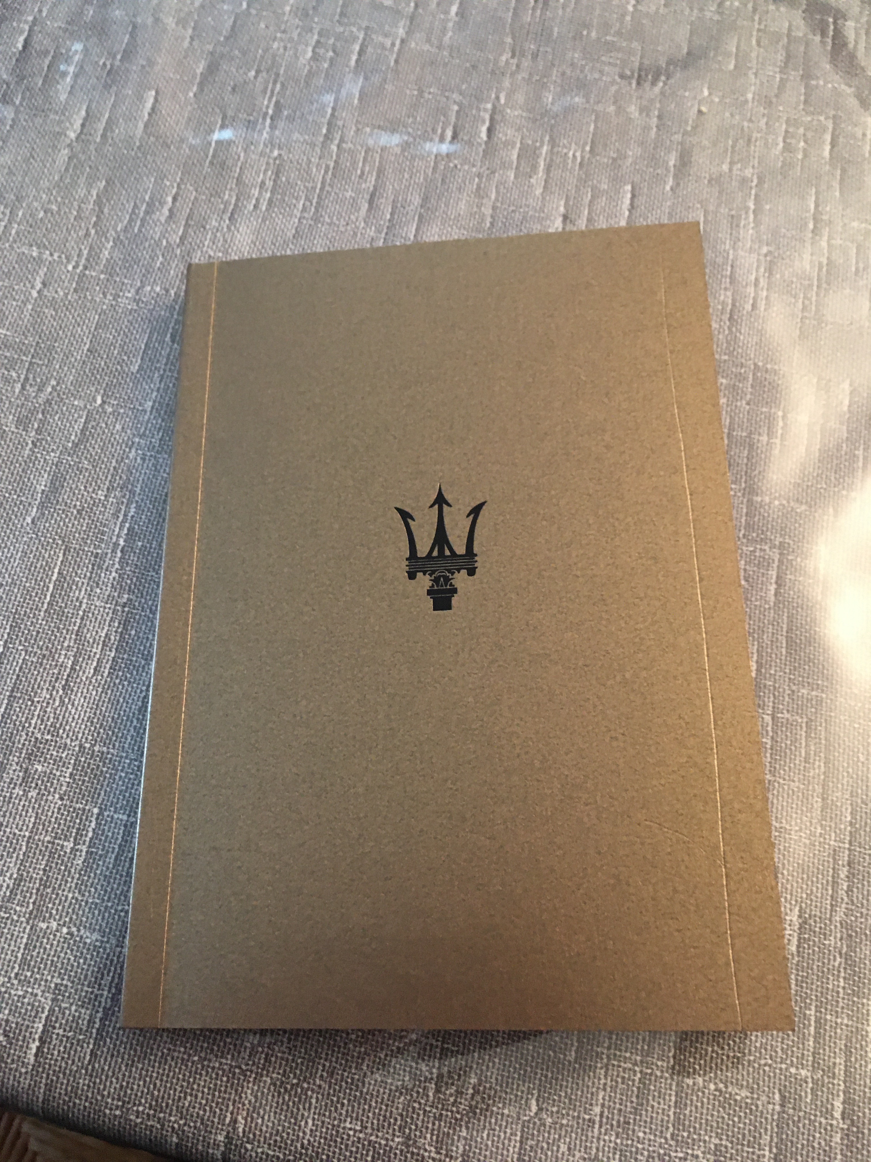 Bref: un petit livret retraçant les 110 ans de Maserati, avec pour chaque modèle une image de l'avant stylisé, et un petit texte: