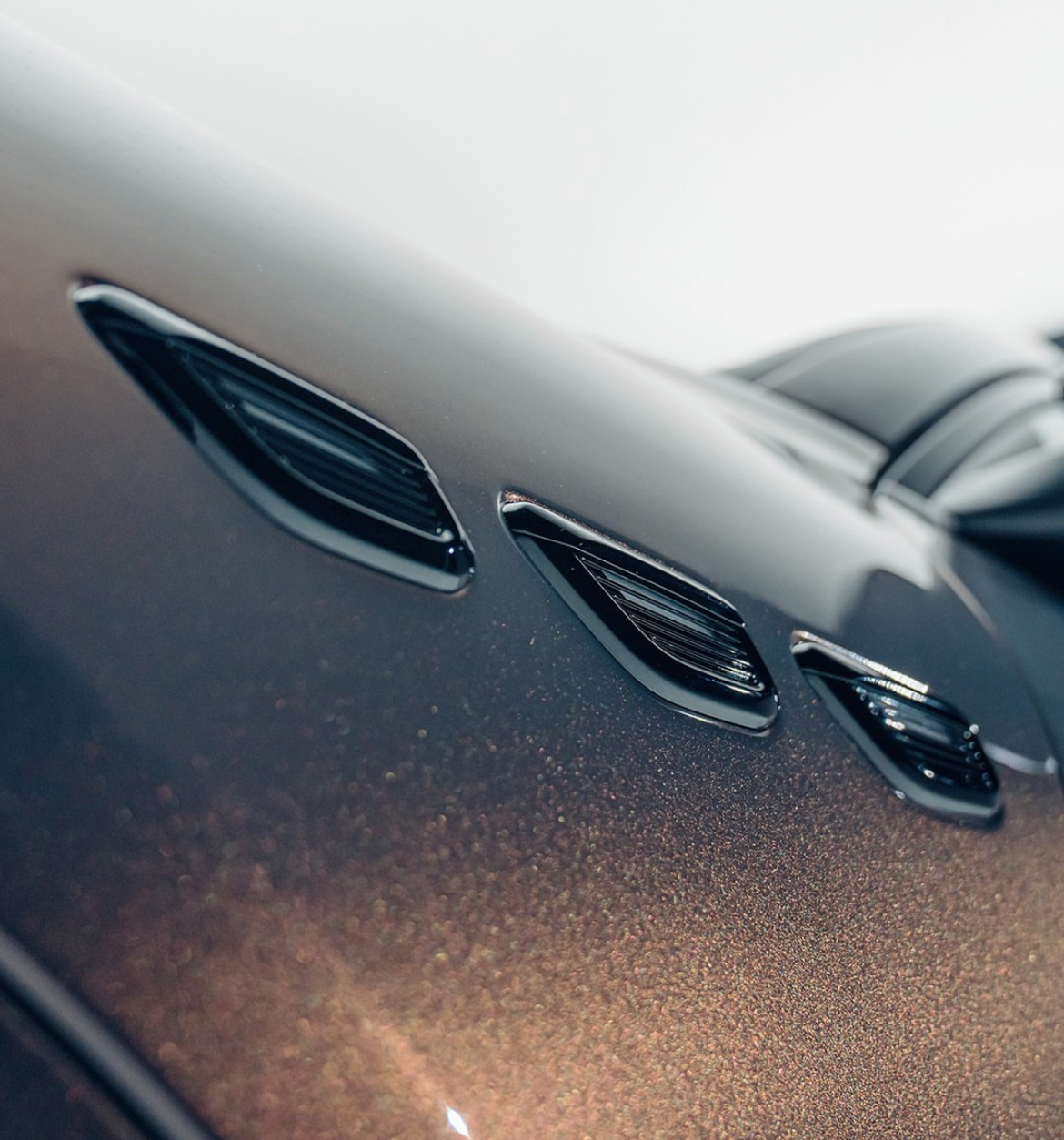 La couleur de la carrosserie est le Gleaming Dusk (crépuscule brillant) et le tour du trident de calandre est peint en cette même couleur .