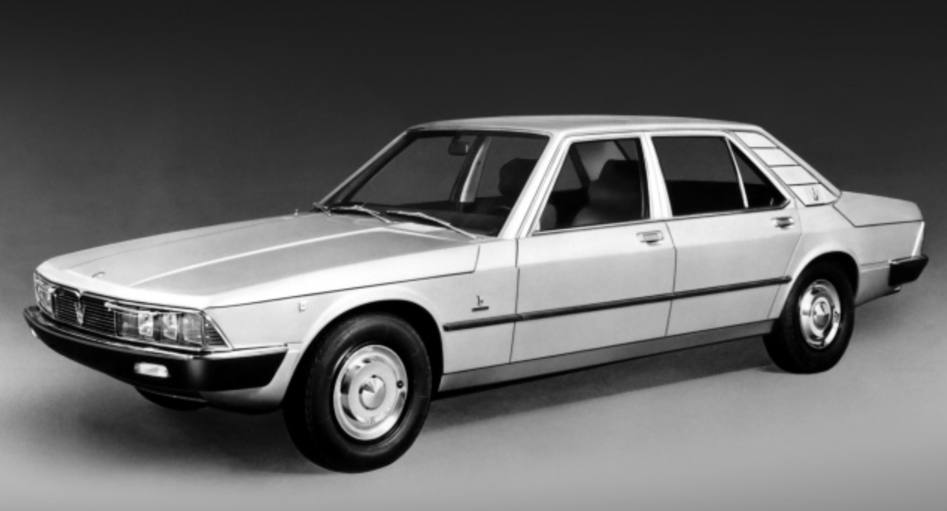 Un petit air de BMW série 5 que Gandini venait de dessiner, mais en plus grandes dimensions. Je la trouve plus harmonieuse que l'Opera. Il était même prévu de réaliser une version V8 traction (en rajoutant deux cylindres au moteur C114 de la SM pour obtenir un V8 de 4 litres et 280 cv) mais, malheureusement, la mise en liquidation en 1975 de Maserati par le groupe PSA (qui avait englobé Citroën) stoppa ce projet Quattroporte II Bertone après la réalisation de seulement une douzaine d’exemplaires de présérie en 1974 et 1975, tous en V6. Le V8 "C114 +2" n’ayant été installé que dans la SM particulière de Giulio Alfieri, l’ingénieur en chef de Maserati.