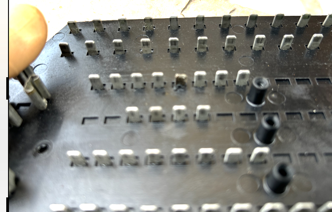 Et on débranche les fiches blanches. Pas besoin de les repérer car elles ont toutes une taille et une forme différentes. On ne pourra pas se tromper en rebranchant à la fin.