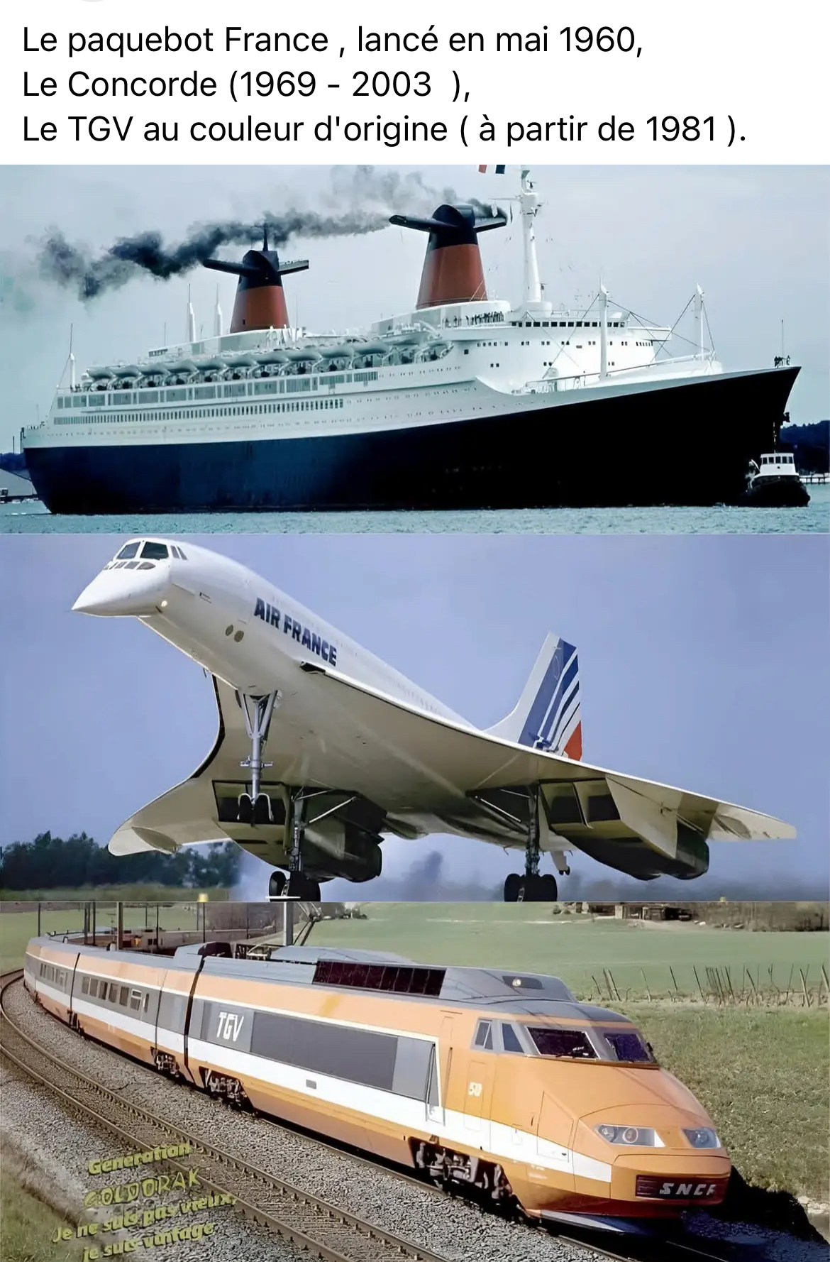 Le temps où la France produisait des moyens de transport (mer, air, terre) éblouissants, bon avec l’aide des anglais (moteurs Rolls-Royce du Concorde) et des italiens (moteur Maserati de la SM).