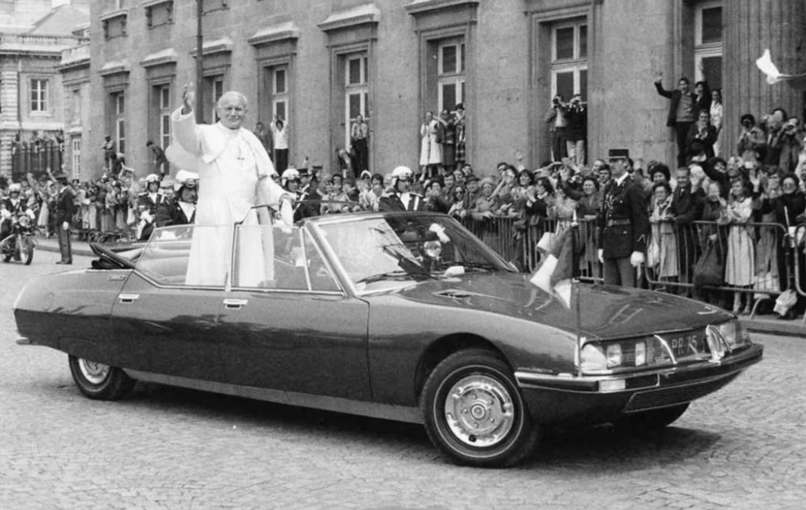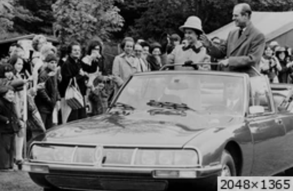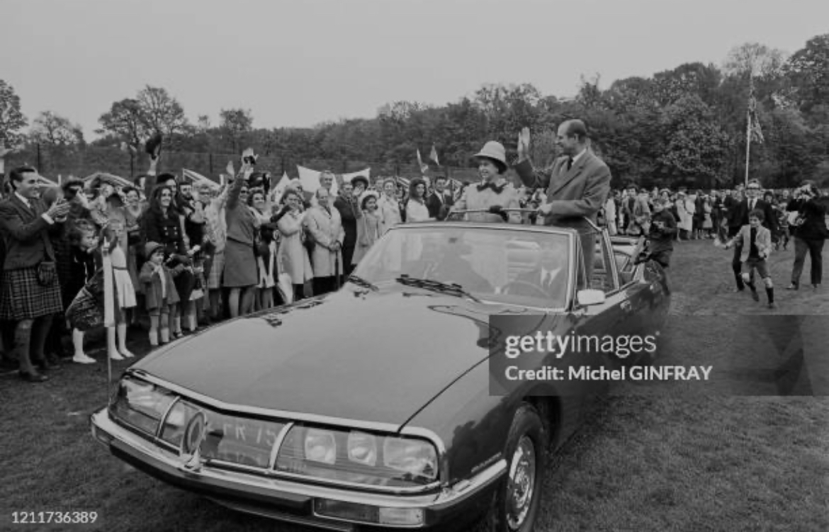 Le très moderne coupé Citroën SM vient de sortir en 1970. Pourquoi ne pas en extrapoler un véhicule découvrable d’apparat ? Sa Majesté (surnom de la SM) pour Sa Majesté la reine d’Angleterre ! De plus, avec sa suspension hydropneumatique, le confort est absolument « royal » !