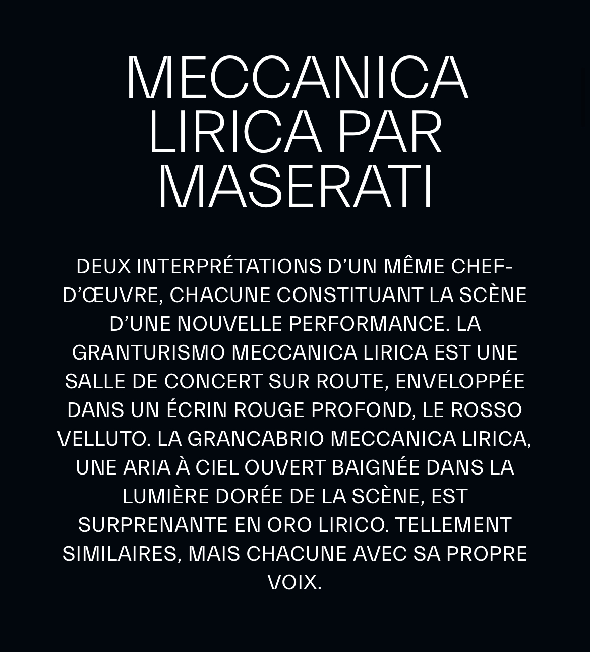 Pour fêter l’événement, le très actif département Fuoriserie a produit deux exemplaires uniques appelés Meccanica Lirica car évoquant la musicalité de leur moteur Nettuno, digne de l’Opera de Modène. Une représentation musicale a d’ailleurs eu lieu ces jours-ci au théâtre Pavarotti avec ces autos sur scène et d’autres séances se tiennent ce week-end.