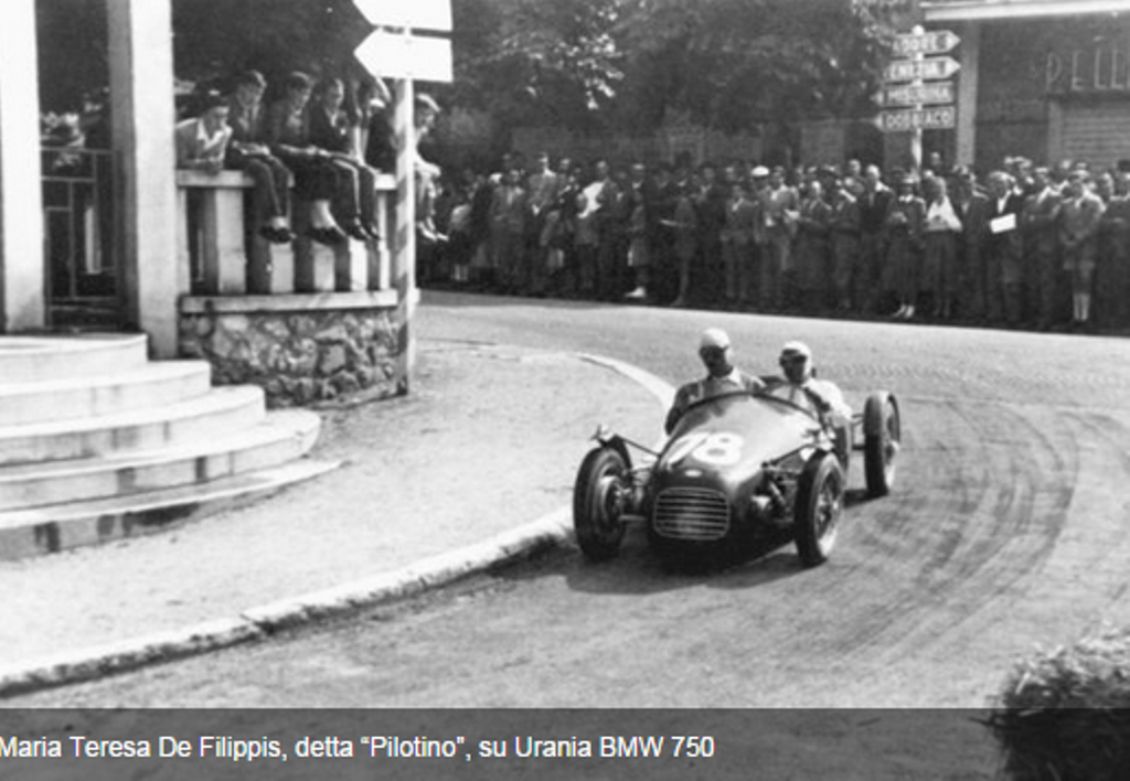 Maria Teresa prit ainsi gout à la course automobile et, abandonnant l'équitation, décida de s'y consacrer totalement. La Fiat Topolino (ce qui signifie petite souris en italien, Topolino c'est Mickey !) avait motorisé l'Italie aisée avant que la Fiat 500 ne motorise l'Italie populaire. Elle n'était pas mal, la Topolino, mais pour la course automobile c'était pas le mieux. Le comte De Filippis, débordant d'amour pour sa fille et ayant le chéquier facile, offrit en 1949 à Maria Teresa une Urania BMW pour la suite de sa carrière de pilote.