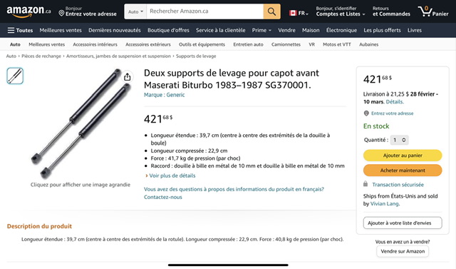 Alors, pour une raison que voila, c’est une raison, j ai cherché des vérins de capot. Bon il y a ceux qu a indiqués Gemini dans son fil Shamal je crois.