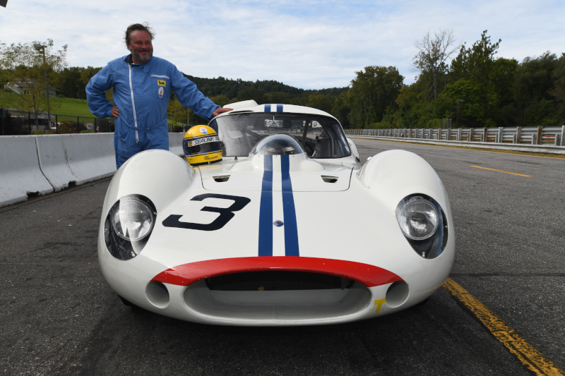 Le mécanicien Cleto Grandi avec sa casquette près de la Tipo 151 de Maserati France :
