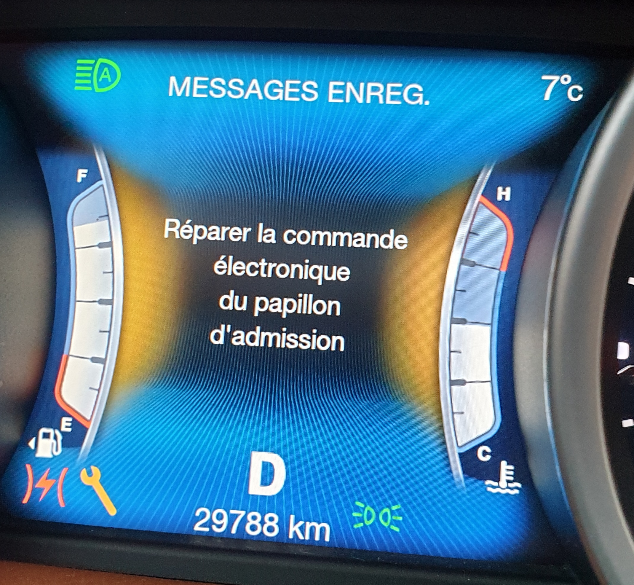 Hier apres un arret de qq mn le voyant s allume avec un message disant de reparer la commande électronique du papillon d admission ? ??