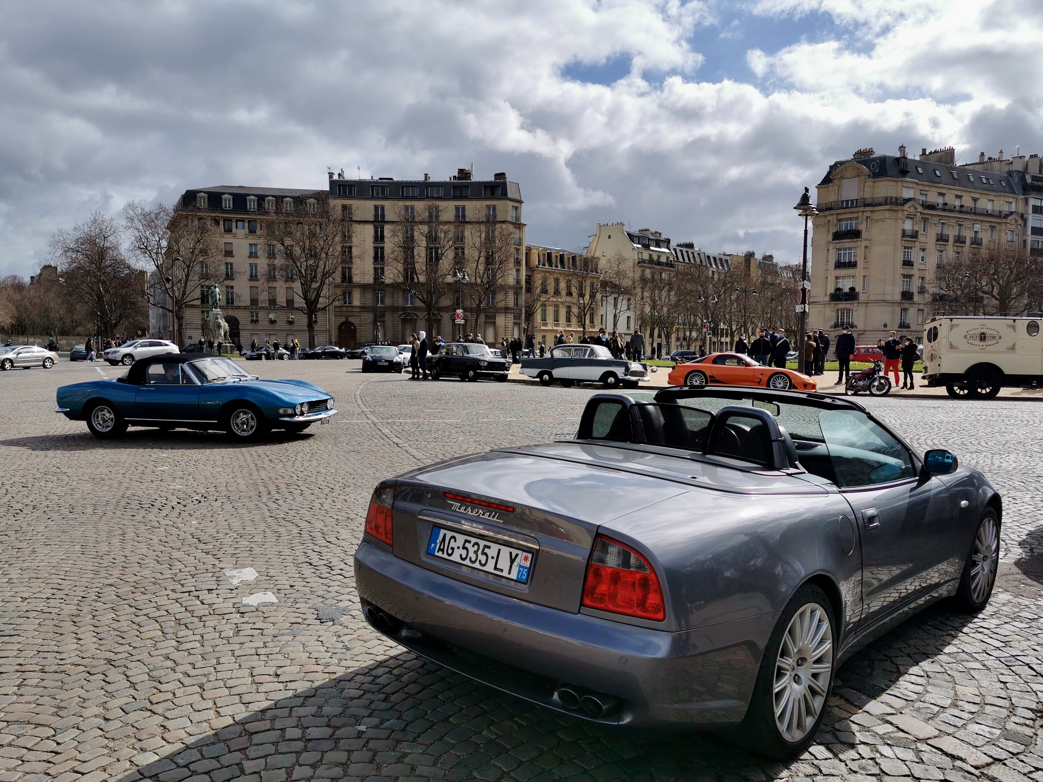 20-30 voitures, quasi entre nous. La on doit être à bien plus que 50 voitures "anciennes ou de sport", plus les autres, et peut être 200 personnes.