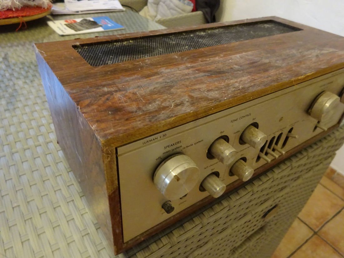 L'ampli est un petit Luxman L30 de 2x 40 vrai Watts de bonne facture fabriqué fin des années 70 et récupéré à la benne en panne