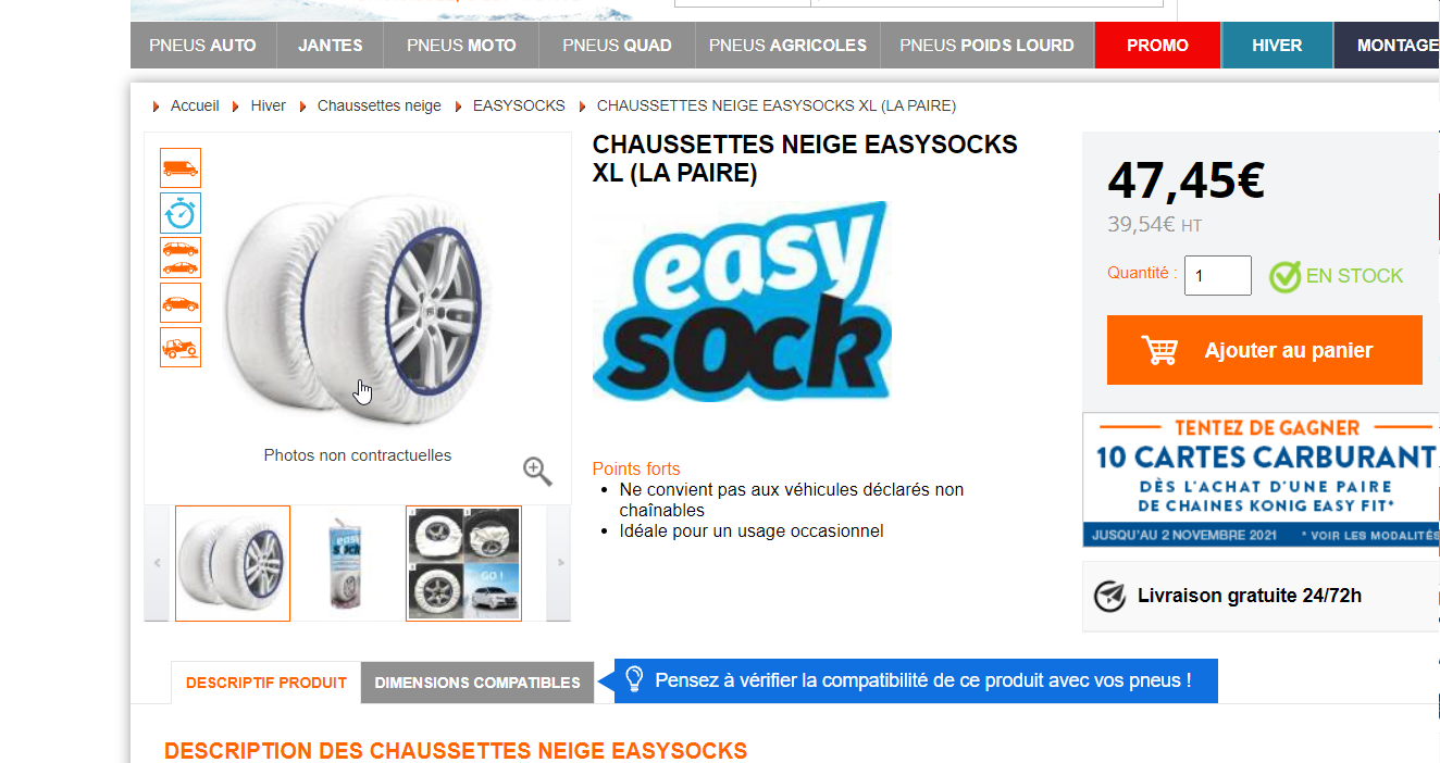 Pour les chaussettes, ton Norauto local doit avoir ce qu’il faut.