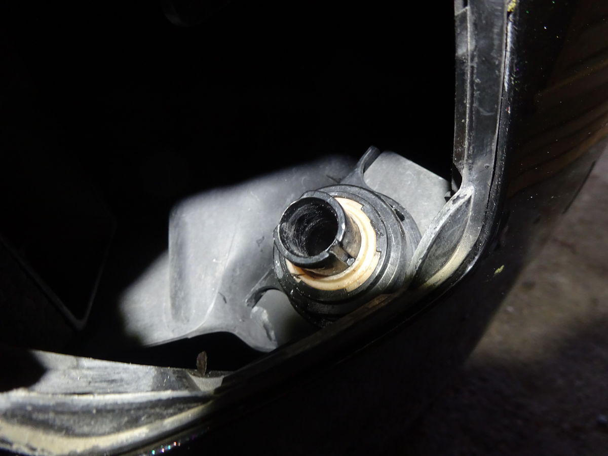 Rentré hier d'une petite balade dans le Var , une demi heure plus tard retour au la voiture pour y récupérer une bricole le collègue me montre une grosse flaque devant la roue AV gauche on regarde c'est du lave glace réservoir vide une autre fois . Ce matin on s'y met on enlève la roue avant je démonte le cache av du passage de roue de l'eau partout dans le par choc je trouve la canalisation qui sert au lave phare toute trempée je démonte partiellement pas de soucis nickel chrome . On remet un peu d'eau on essai les lave phares et là une fontaine sous la voiture surtout coté gauche , en fait tant que n'avais pas touché aux les laves phares c'était bon mais une fois utilisés terminé grosse fuite et donc voilà le coupable le joint jaunâtre n'est pas le joint d'étanchéité vue la rainure de guidage sur le piston le piston du lave phare plus du tout étanche