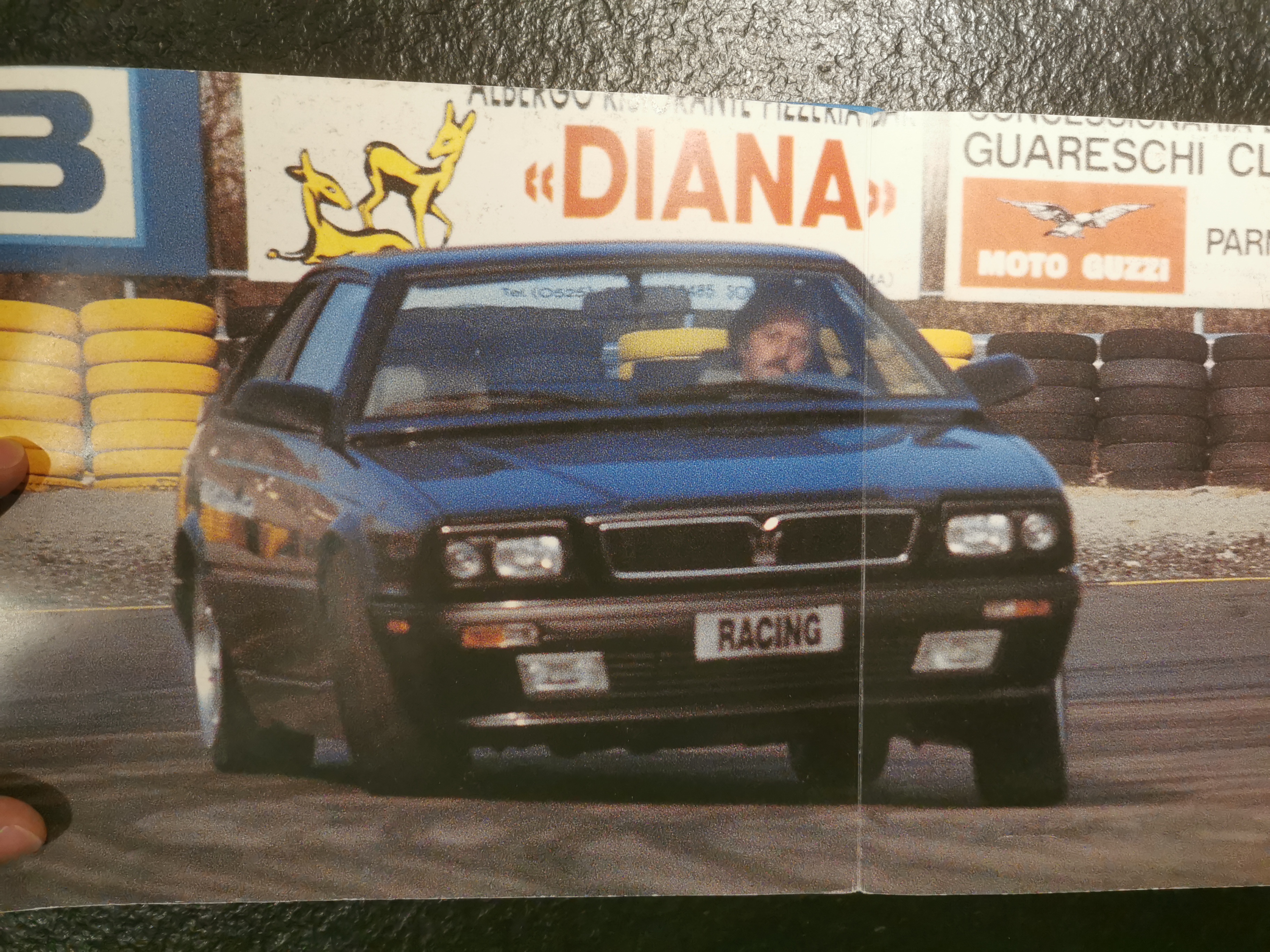 Je pense que c'est l'ancien pilote Giancarlo Baghetti qui essaie la Racing sur circuit et contre braque. Je dois voir Philippe Murari à Modene dans quelques jours et je lui demanderai confirmation. Après sa carrière de pilote, Giancarlo Baghetti a eu une activité de journaliste auto à la télévision italienne et dans la presse auto.