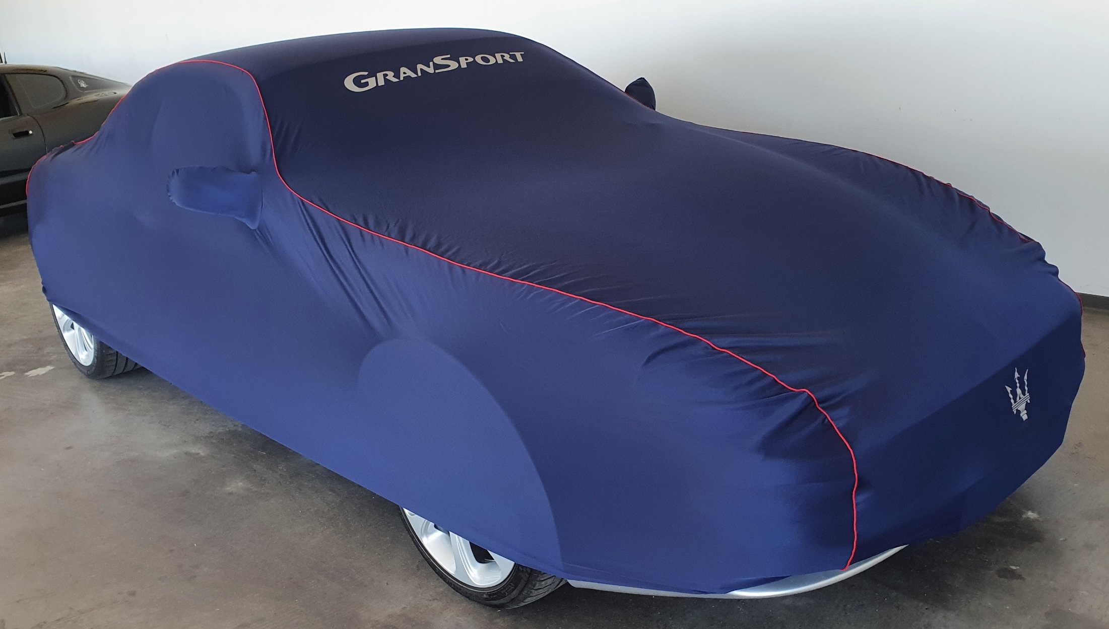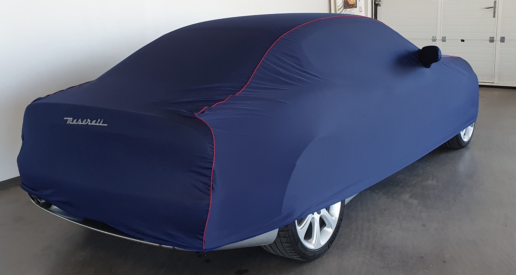 - Housse Maserati bleue avec surpiqures rouges fournie.