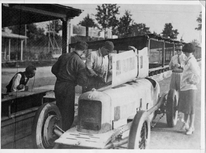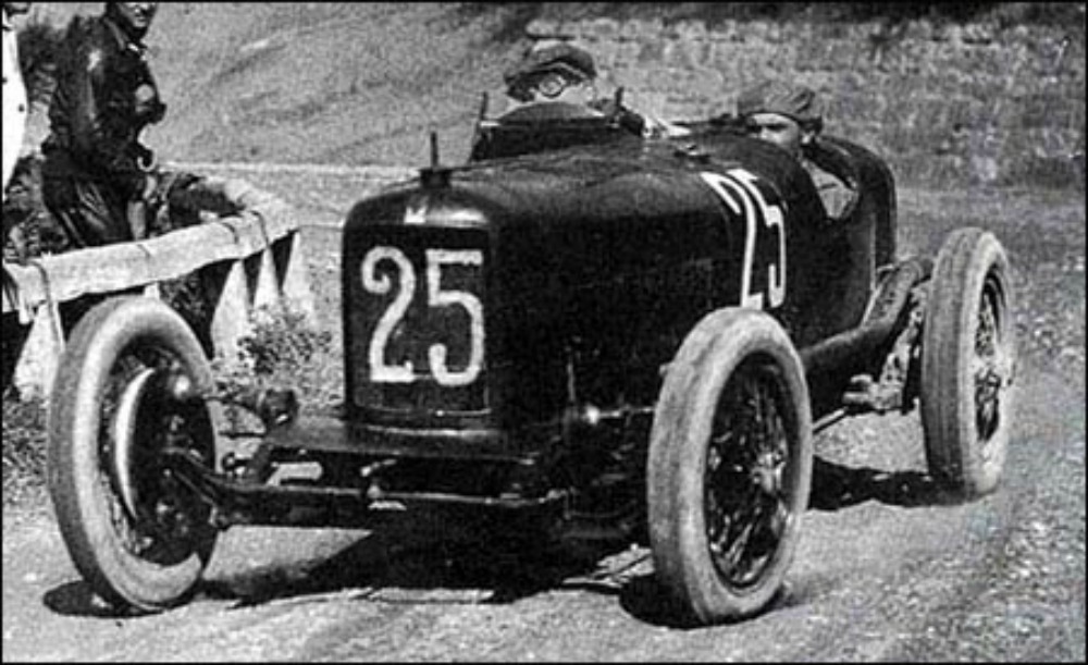 Ci-dessus la Diatto Grand Prix entièrement conçue et réalisée par les frères Maserati (Alfieri au volant et Ernesto à côté). 8 cylindres en ligne, 2 litres, double arbre à cames en tête (c'était rare à l'époque) et compresseur.