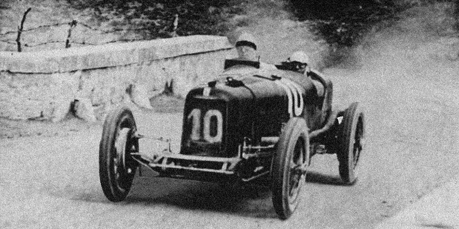Alfieri Maserati au volant d'une Tipo 26 : Ernesto Maserati au volant d'une Tipo 26 à la Targa Florio 1927 : Le volant était vraiment proche du corps du pilote !