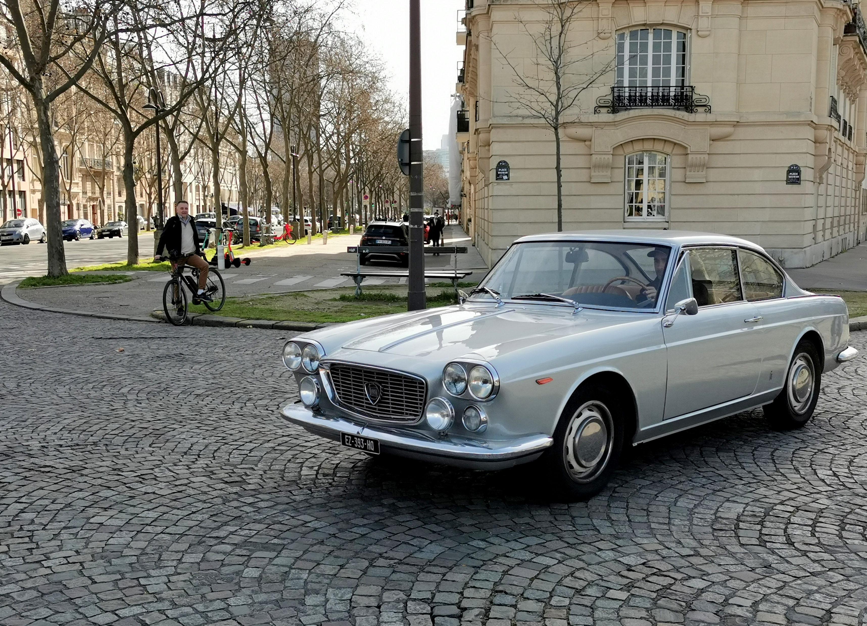 Prise sur le vif en face du château de Fontainebleau ! Elle était précédée d'une belle Granturismo grise.