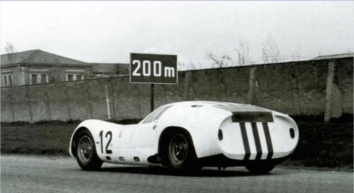 Sur la photo ci-dessous, prise lors des essais d'une Tipo 151 "Cunningham" à l'autodromo di Modena, on reconnait de la gauche à la droite Briggs Cunningham (point rouge), l'ingénieur Giampaolo Dallara qui était alors l'assistant de Giulio Alfieri (point bleu), Albert Momo le mythique chef mécanicien du team Cunningham (point jaune), John Simone (point vert), l'ingénieur Giulio Alfieri (point marron), Omer Orsi le directeur de Maserati (point mauve) :