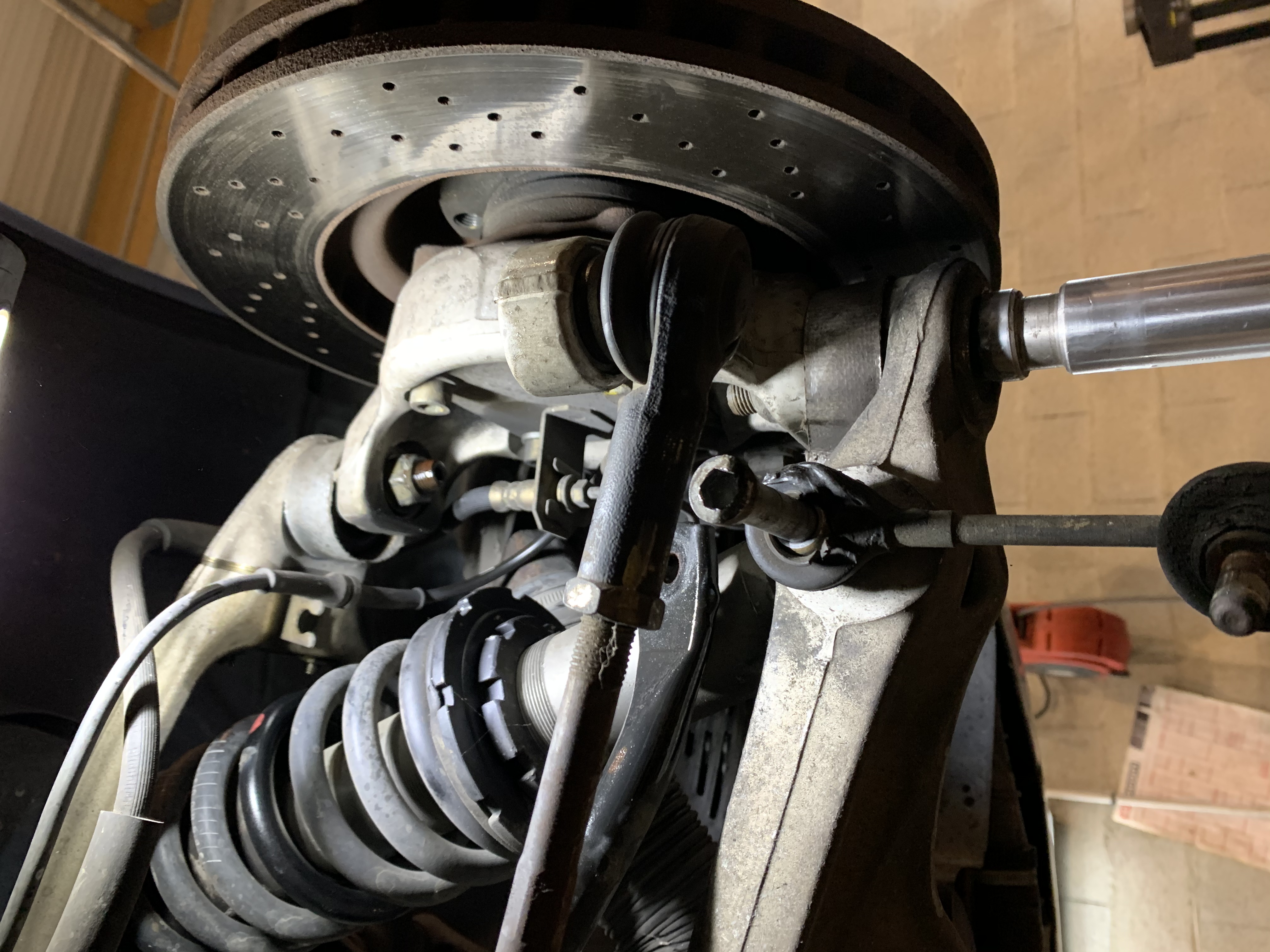 Par contre, démontage du triangle supérieur pour changement de la rotule supérieure. Une vraie misère. Impossible...