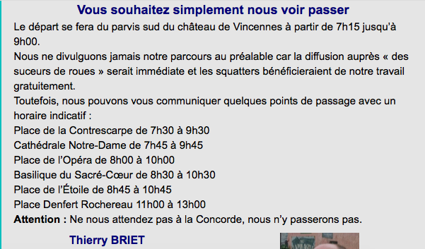 En revanche, ils annoncent un rdv à 7h00 au château de Vincennes, et non 10h place de la Concorde.
