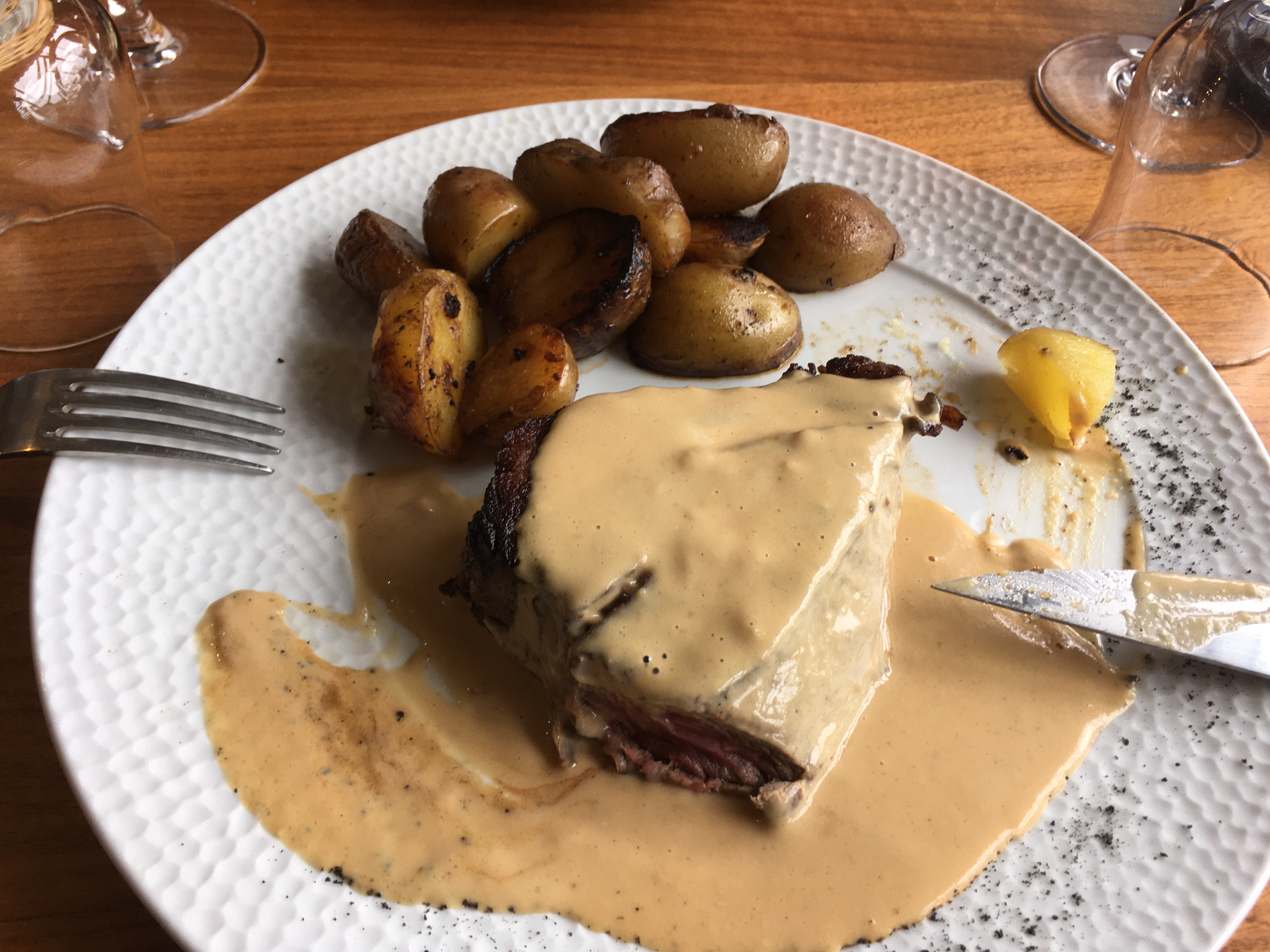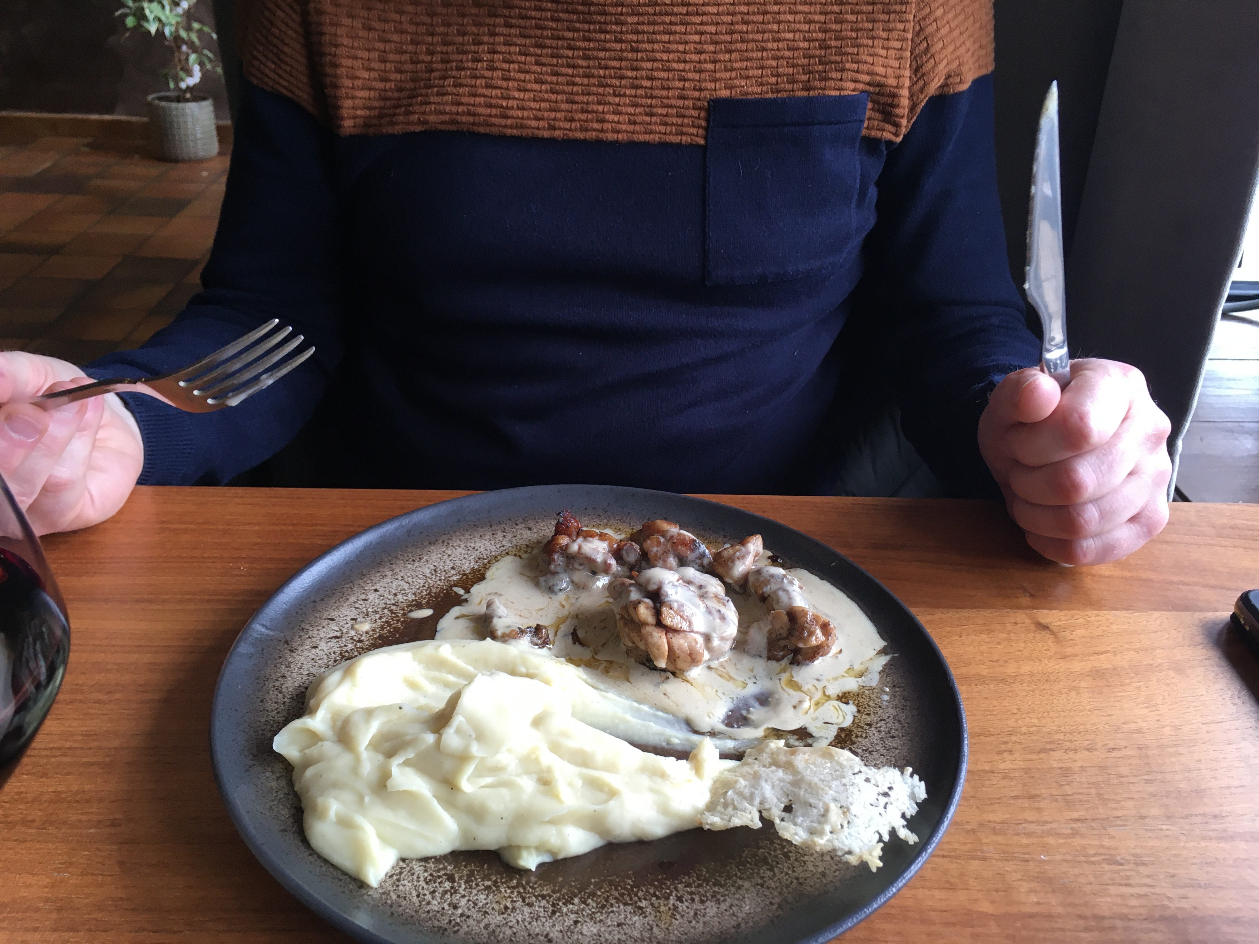 Ris de veau pour Remy, pavé pour mézigues, arrosés d’un pinot noir... A la tienne Bay....