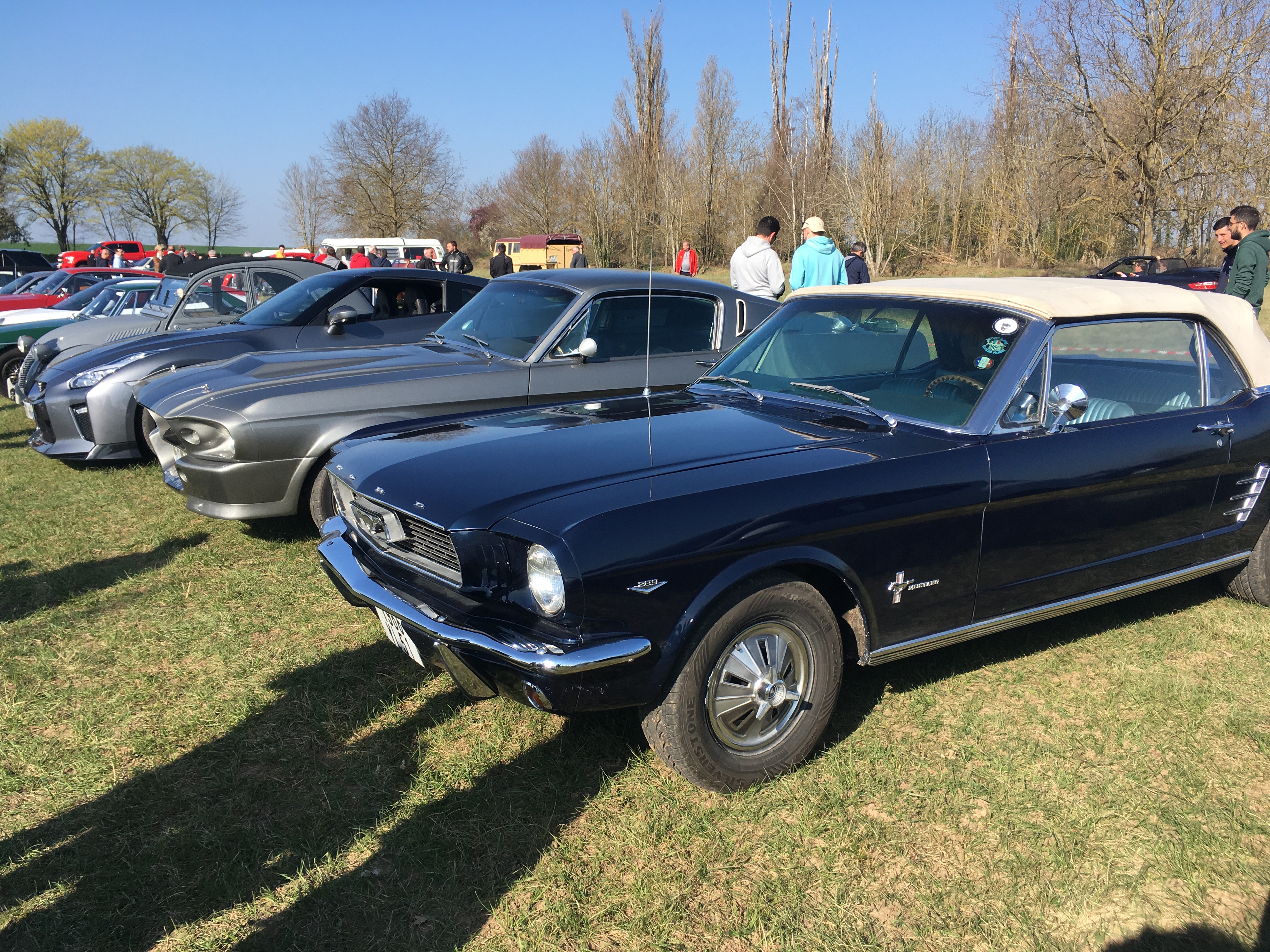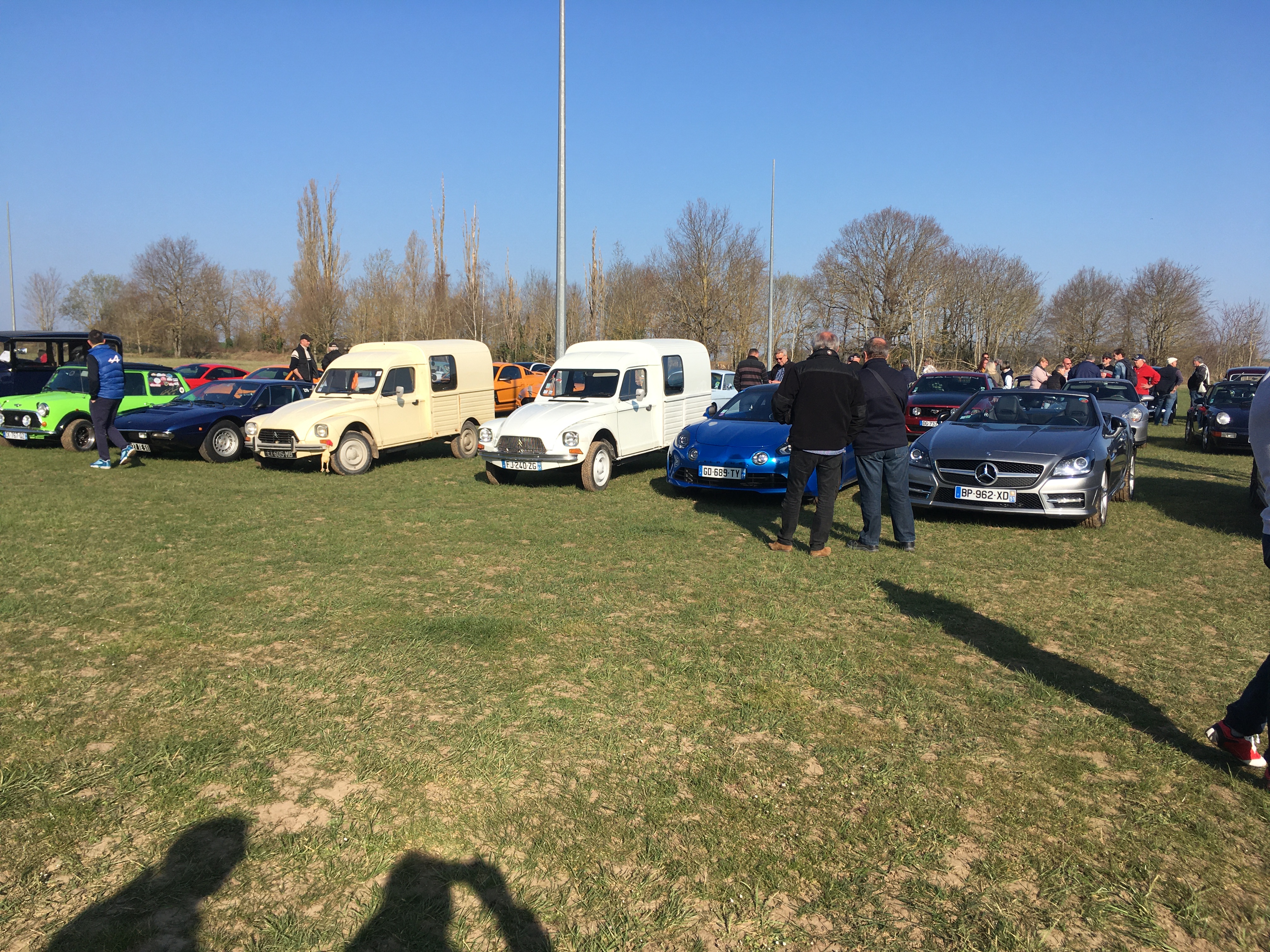 11h30. Beaucoup de Porsche comme d’hab’, mais aussi de ‘stang, d’Alpines/Renault, et bcp de raretés.