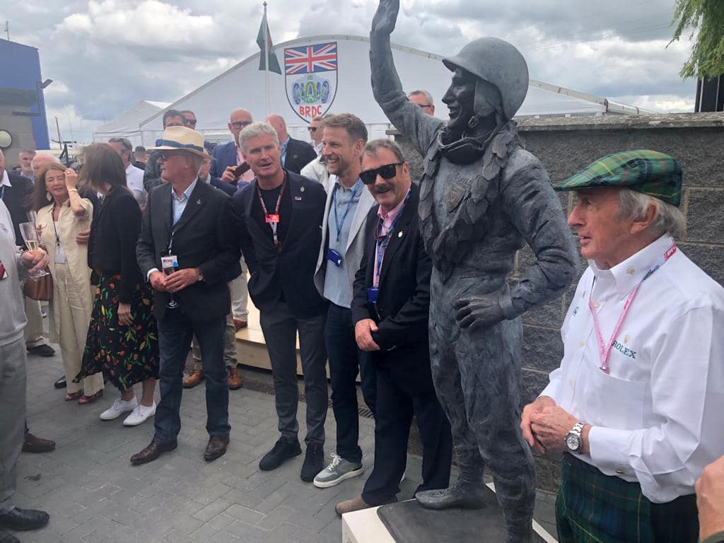 L'inauguration de la statue de Stirling Moss à Silverstone aujourd'hui avec Sir Jackie Stewart, David Coulthard, Nigel Mansell et Jensen Button.