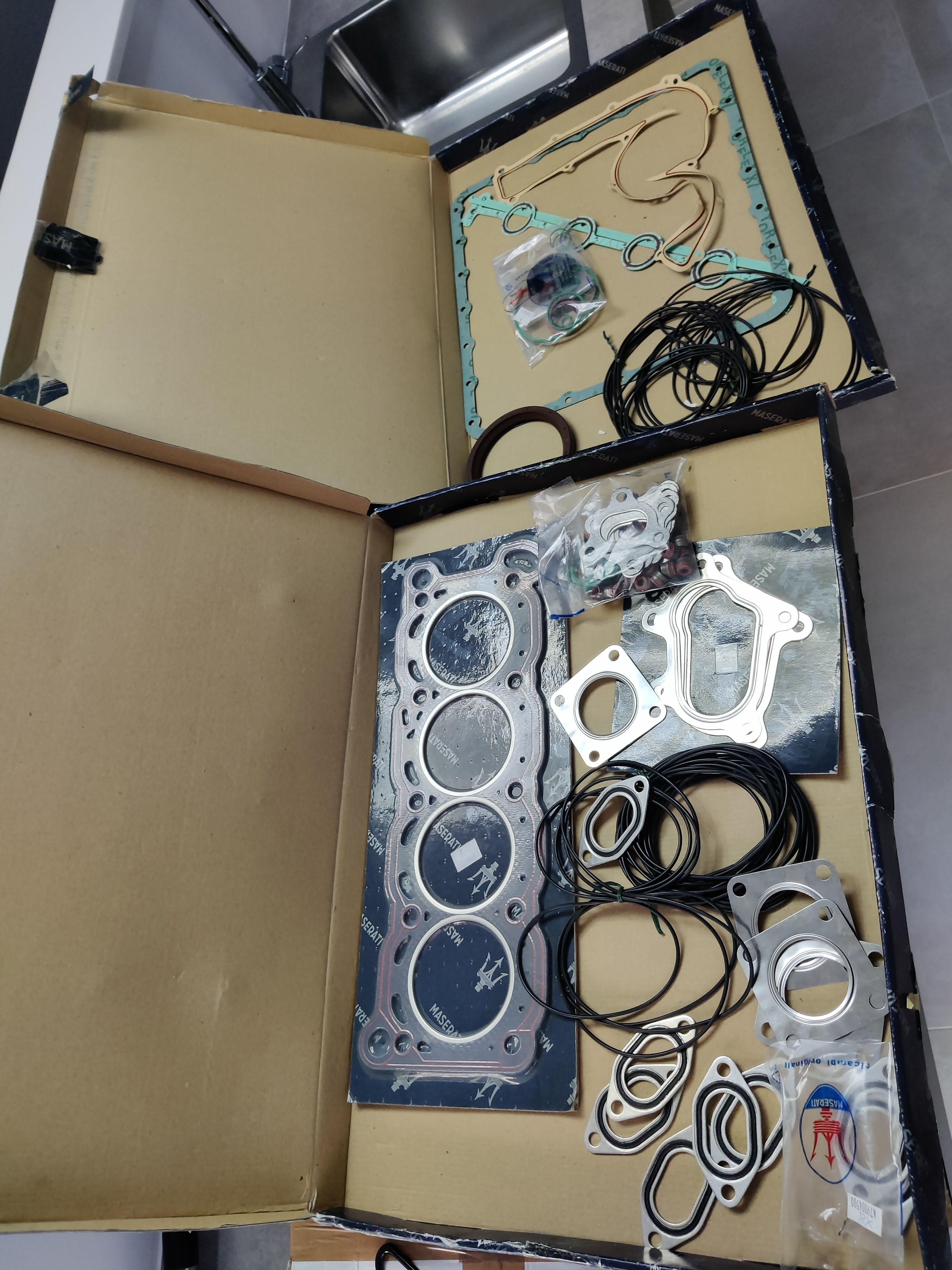 J'avais acheté deux vieille boite maserati pleine de tous les joints bas et haut moteur, fallait bien que je m'en serve.