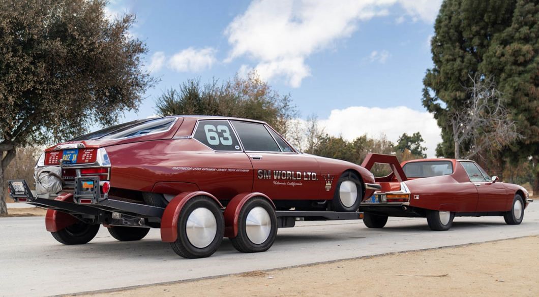 Quelle passion Citroën et quelle ingéniosité de Jerry Hathaway ! Et c'était pratique pour décharger en baissant hydrauliquement de plateau. L'avant du Pick up-SM avec son attelage derrière :