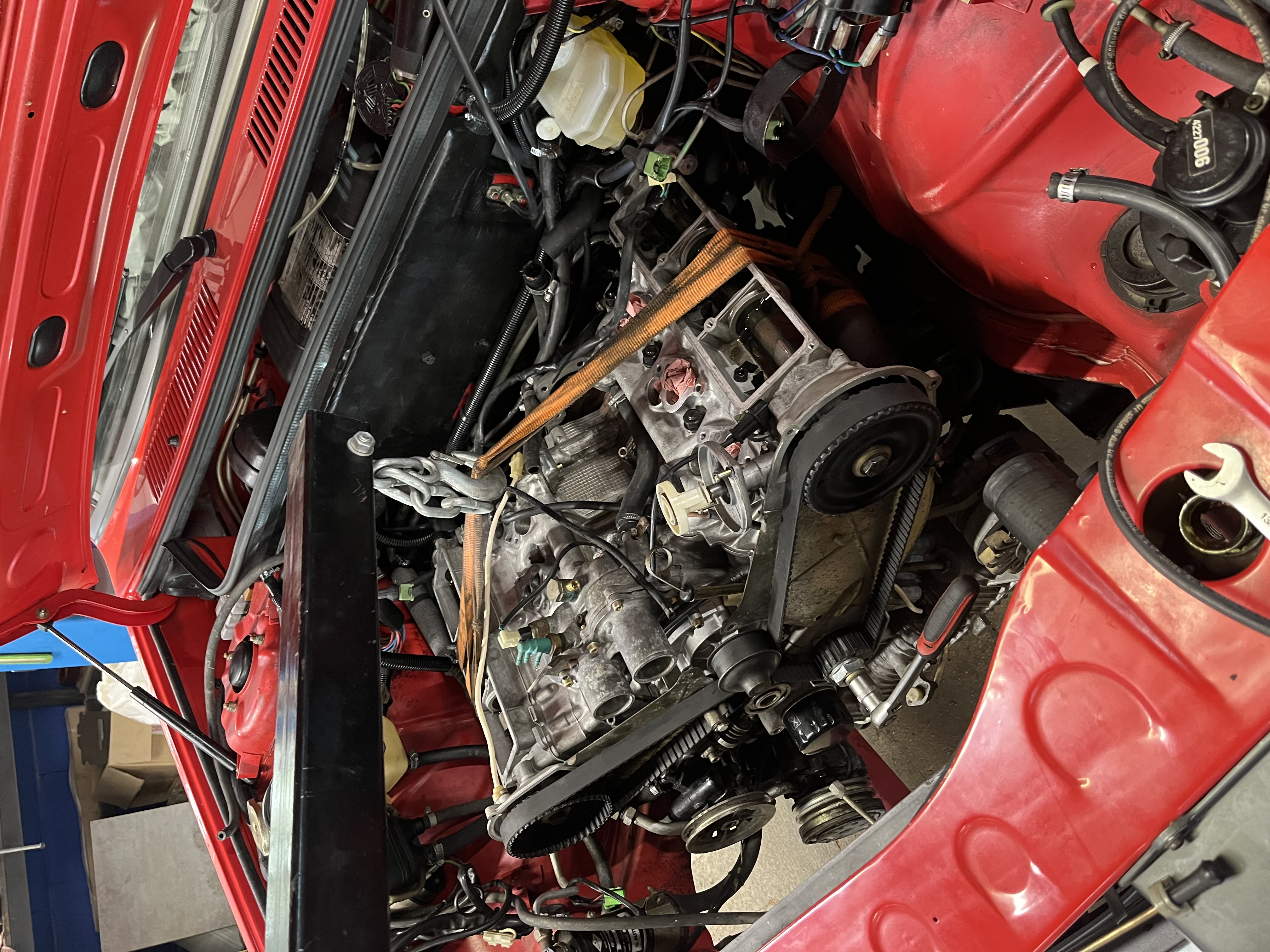 Remontage du moteur dans la Dino. Suite en attente pour le moment.. client compliqué…
