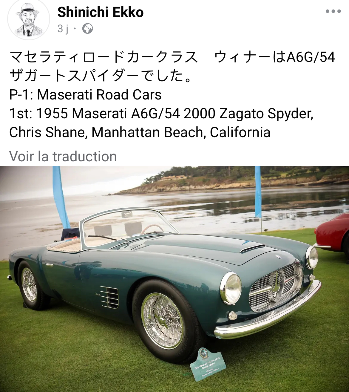 Ciao Olive, effectivement Jonathan Segal avait remporté en 2023 le concours d'élégance d'Hampton Court avec cette belle et rarissime A6G54 Spyder Frua nez court.