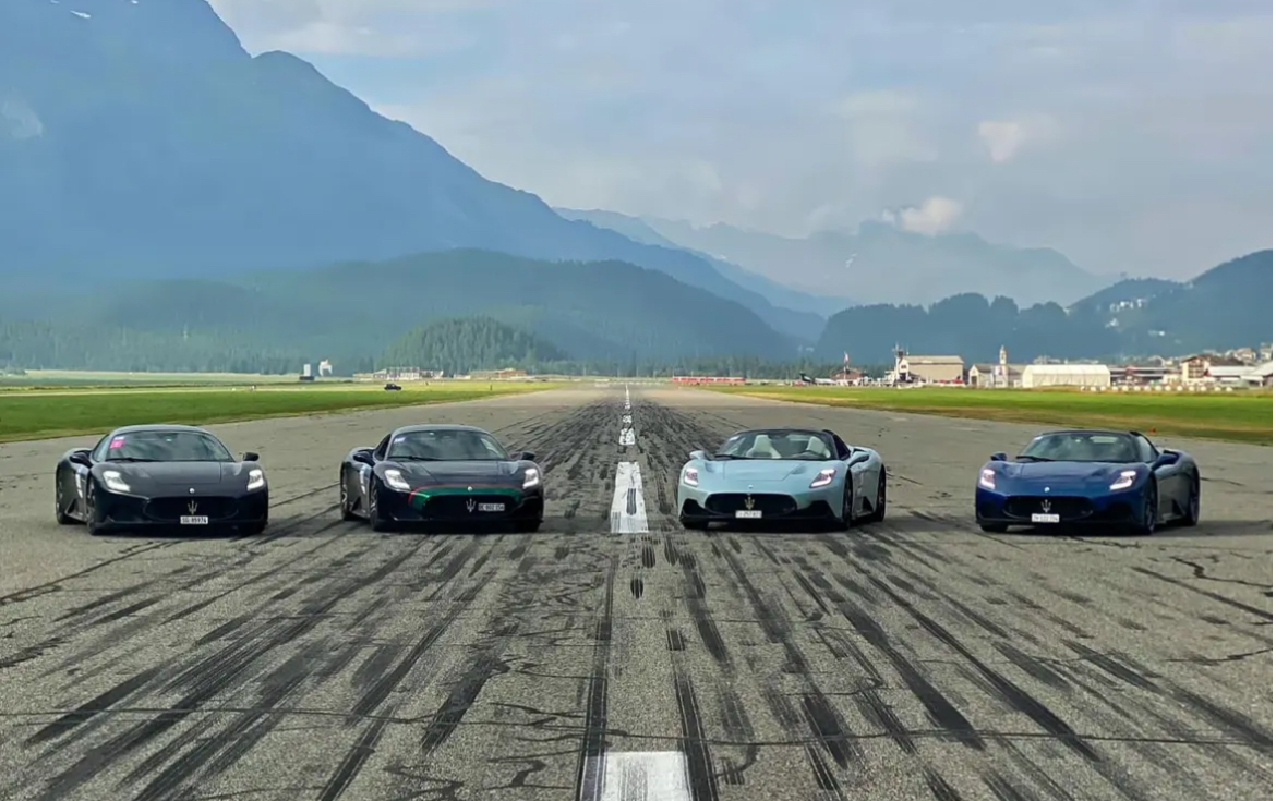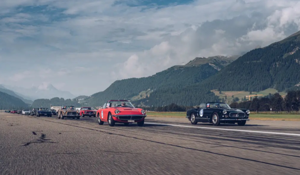 Pour fêter les 110 ans de Maserati, les bolides ont été lâchés sur la piste de l’aéroport de Saint-Moritz. Photo Eugenio Clamer pour Passione Engadina :