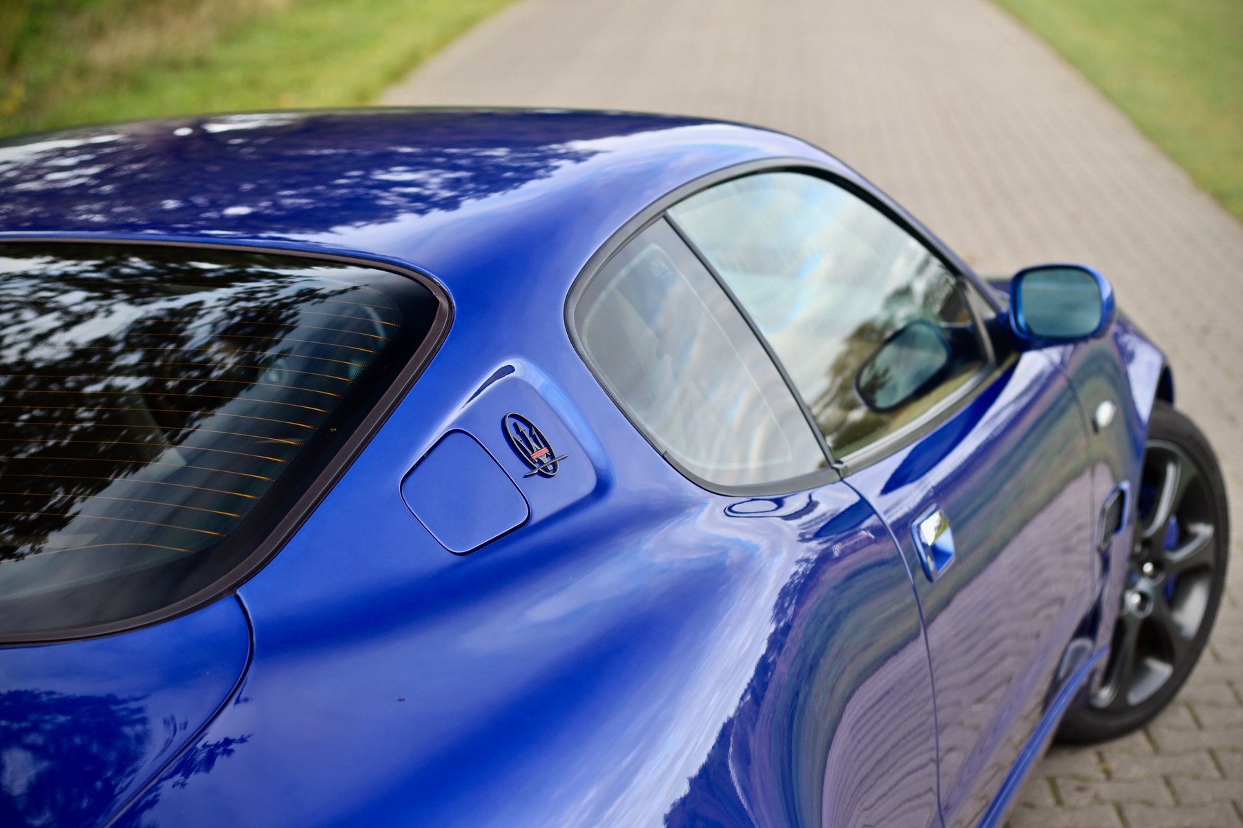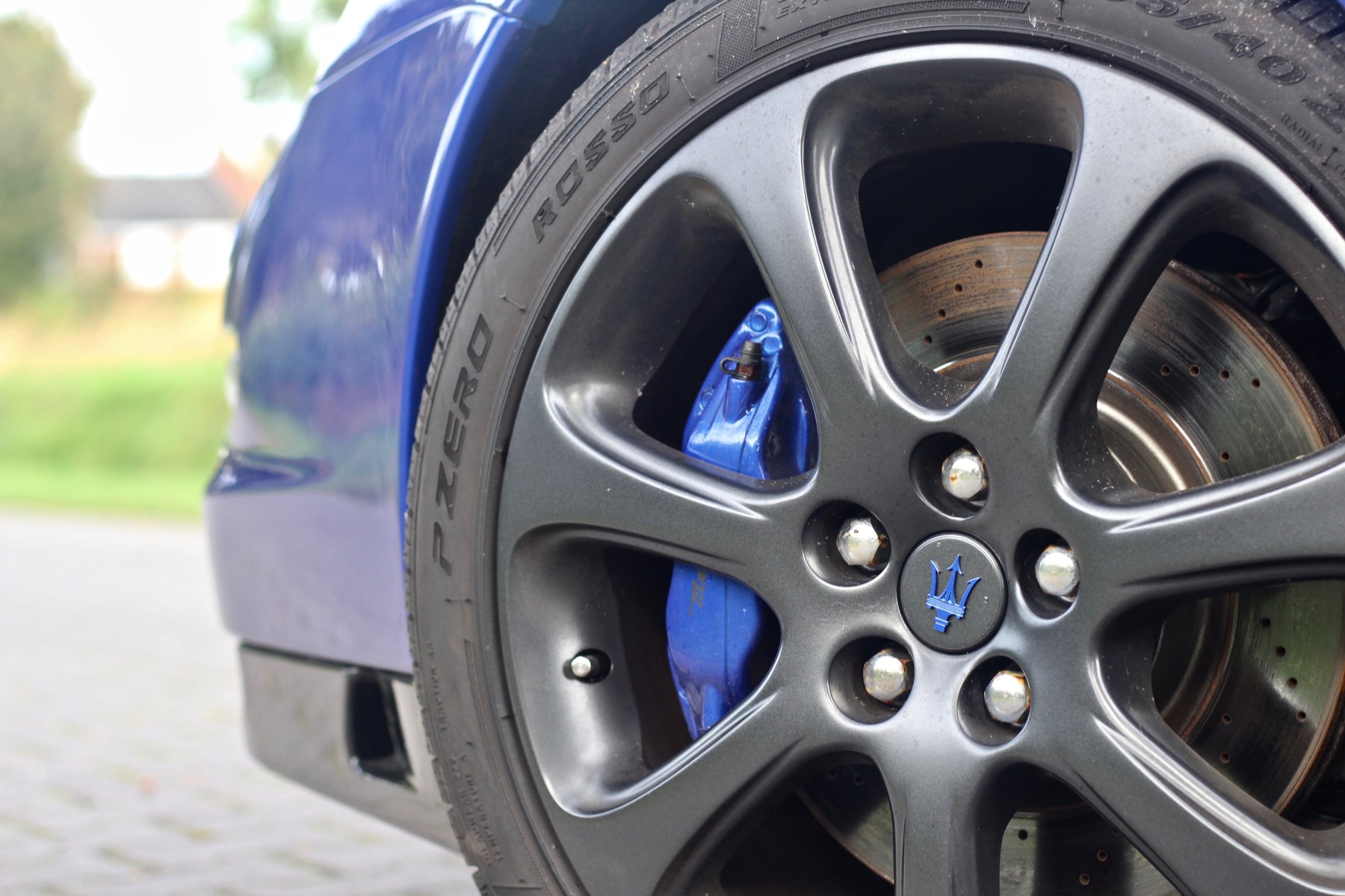 Le vendeur a dépensé 18000€ pour la mettre dans cette configuration donc je l'ai acheté en conscience et j'aime beaucoup cette version transformée. Pare choc, grille ,spoiler Gransport Facelift, phares à LED, pot Larini, boutons intérieurs refait à neuf, 4 pneus Pirelli neufs et surtout la couleur Blu Inchiostro option disponible seulement sur la Granturismo et donc référencée chez Maserati (pour les réparations).L'intérieur des phares est couleur anthracite avec l'inscription Maserati.