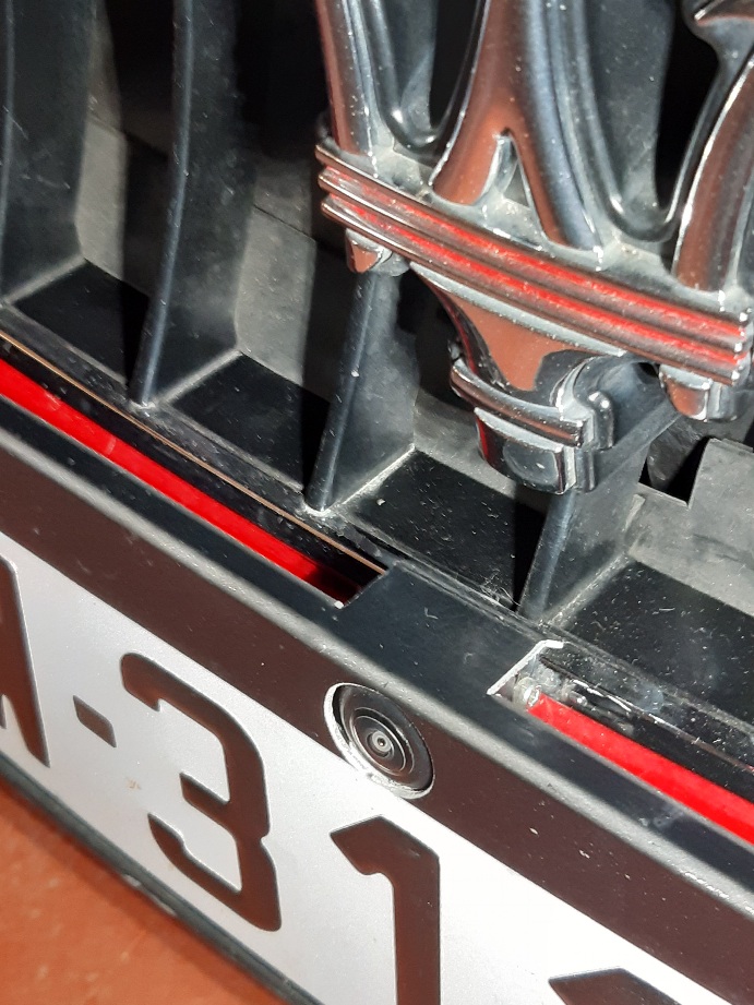 J'ai utilisé un support de plaques retourné afin qu'il serve comme support de caméra, et un profilé (fait maison) en aluminium laqué noir qui a servi de cache caméra. Pour les branchements c'est pas très compliqué car le module carplay/Android auto est prévu avec les entrées nécessaires, mais la aussi je ne me suis pas contenté de faire simple, puisque je voulais pouvoir actionner les caméras quand je le voulais, donc par exemple quand je dois effectuer une manœuvre en marche arrière je peux allumer la caméra avant, ceci a été possible avec l'aide de 2 doubles relais et un bouton de commande basculeur on/off/on que j'ai discrètement dissimulé sous la petite trappe dans le compartiment cendrier, j'en ai d'ailleurs profité pour installer une double prise USB au lieu de l'allume cigare. Voici les vues avant et arrière que j'ai, c'est vraiment très net.
