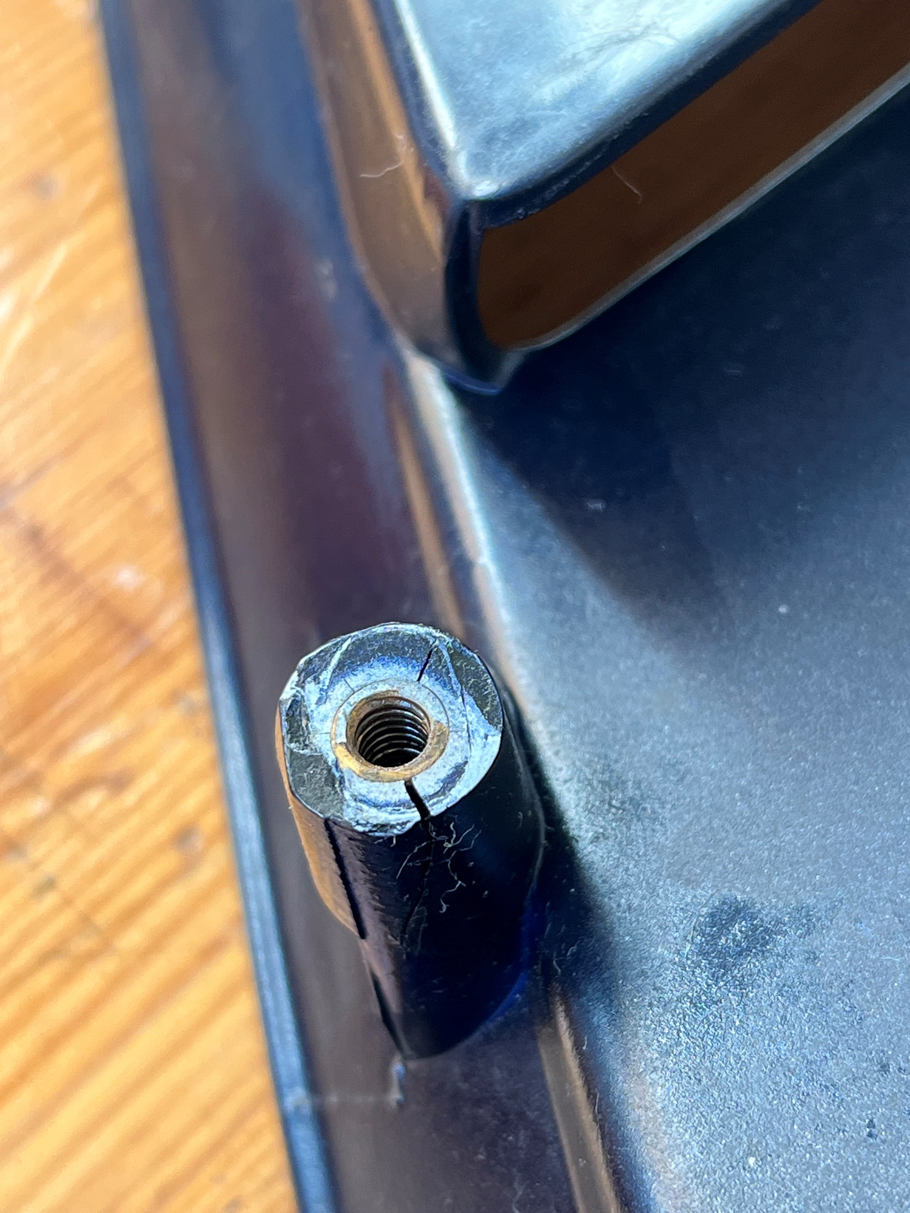 Premiére surprise, la partie femelle des vis de fixation est serties dans des plots en plastique qui se cassent en plusieurs morceaux quand on dévisse les grilles