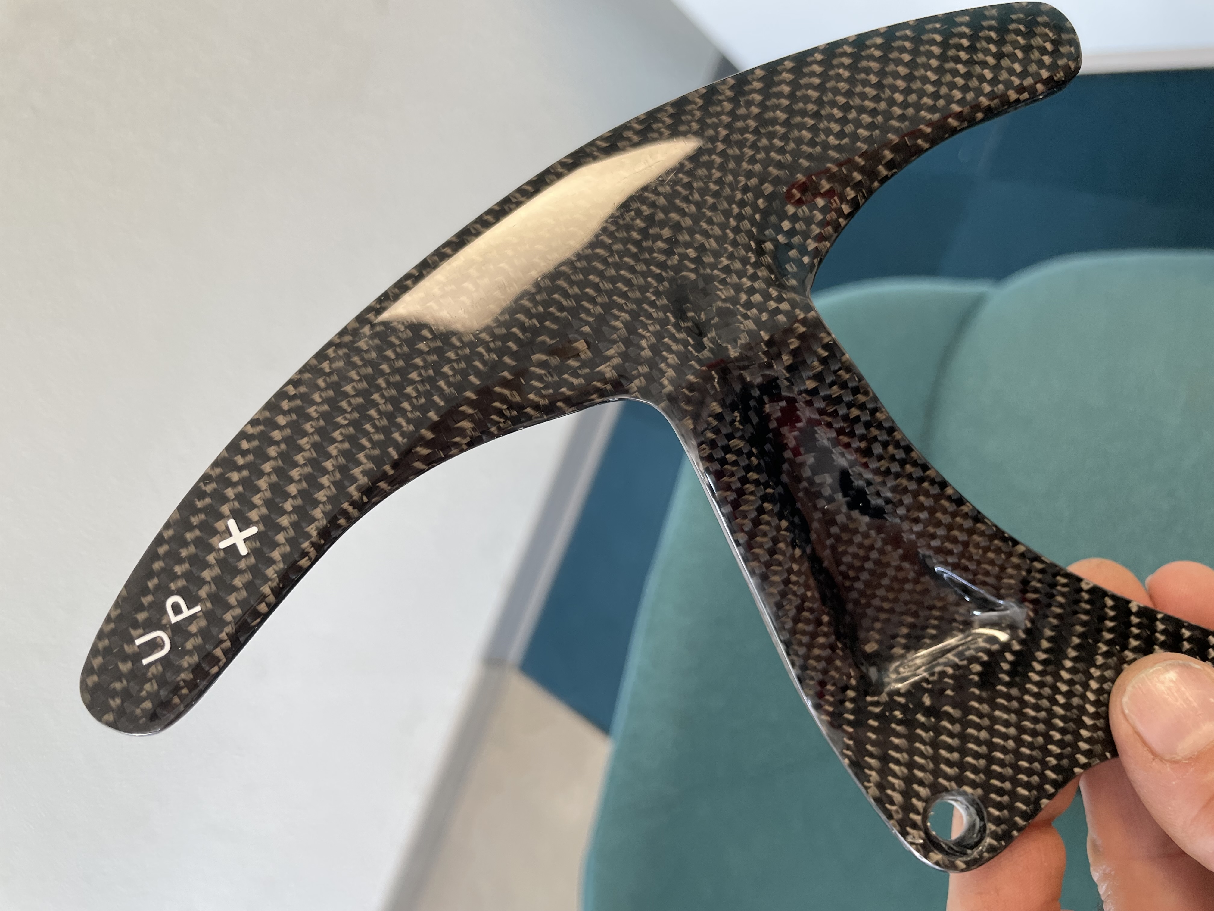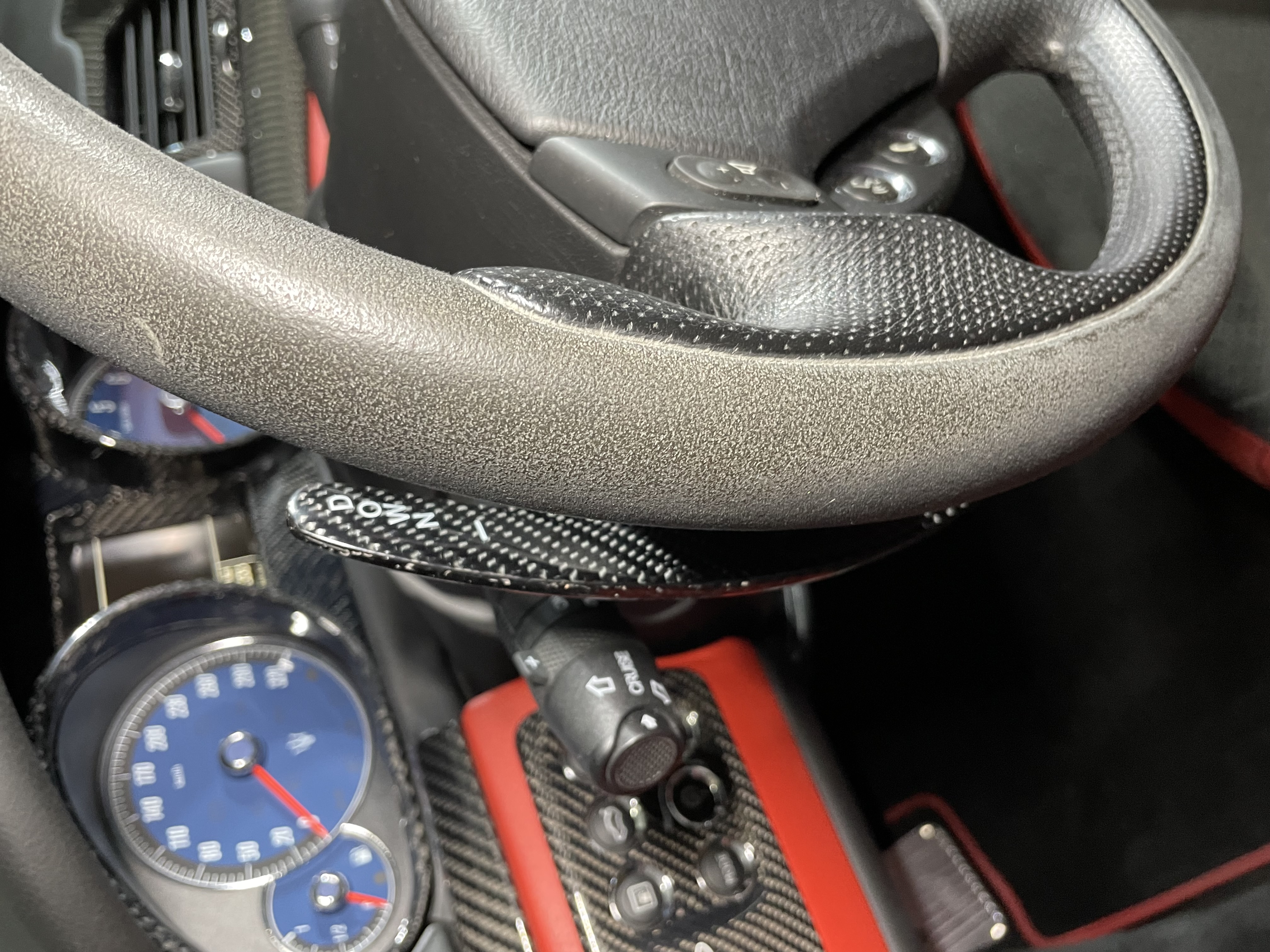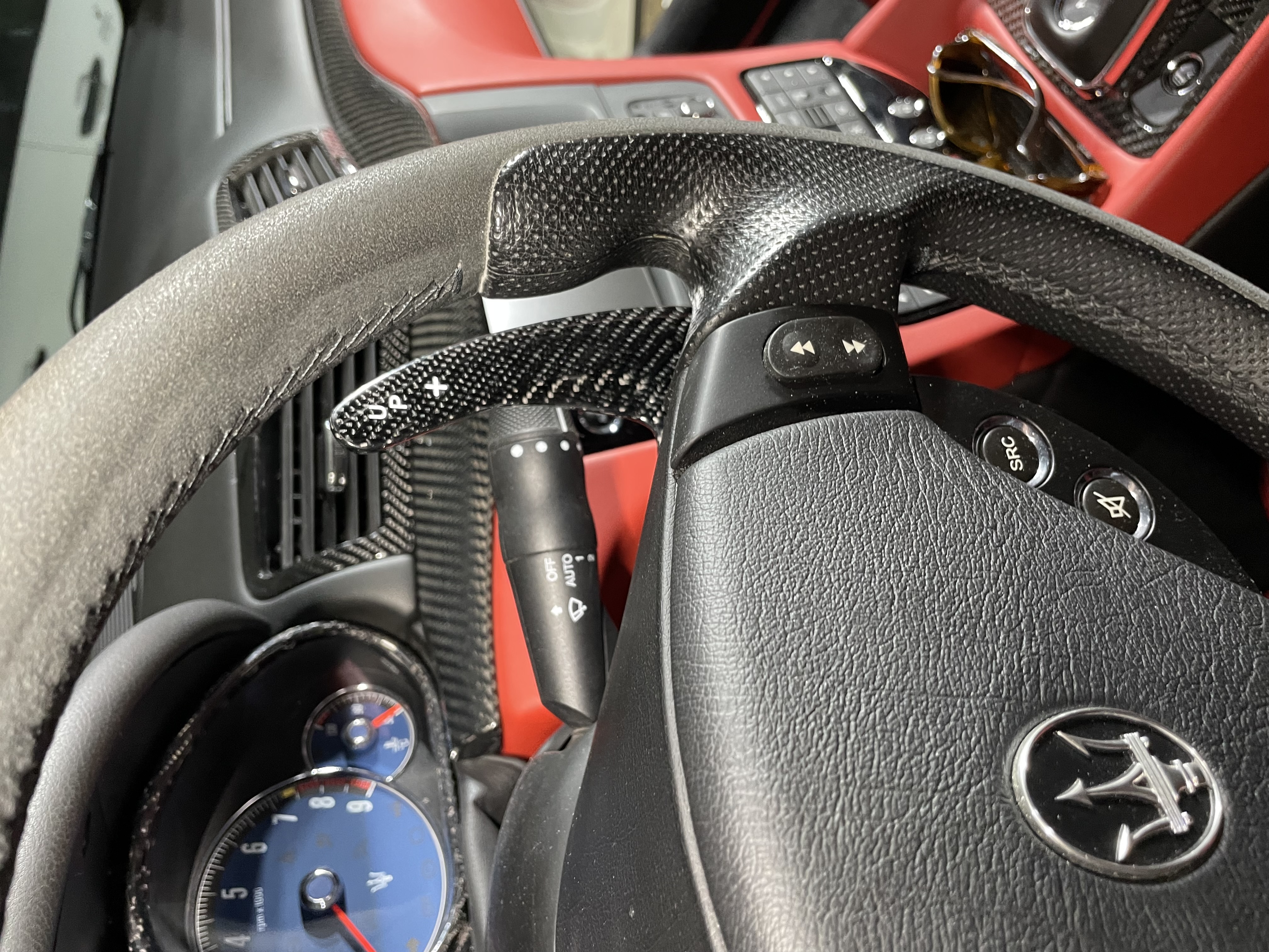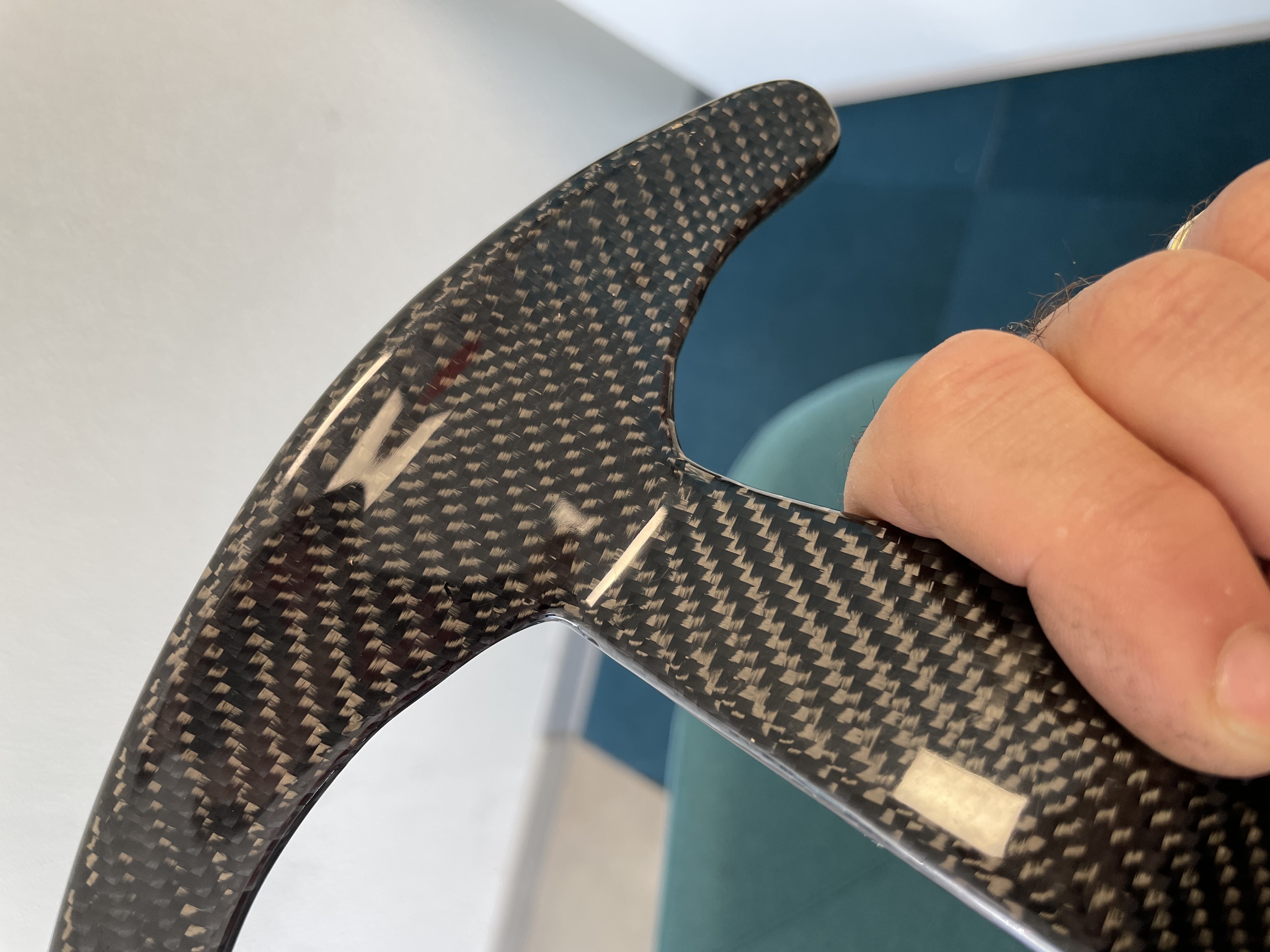 Juste un bémol sur la trame du carbone différente de l’origine, au niveau de l’encadrement des boutons 1/R , qui choque moins tout de même en réalité que sur les photos …