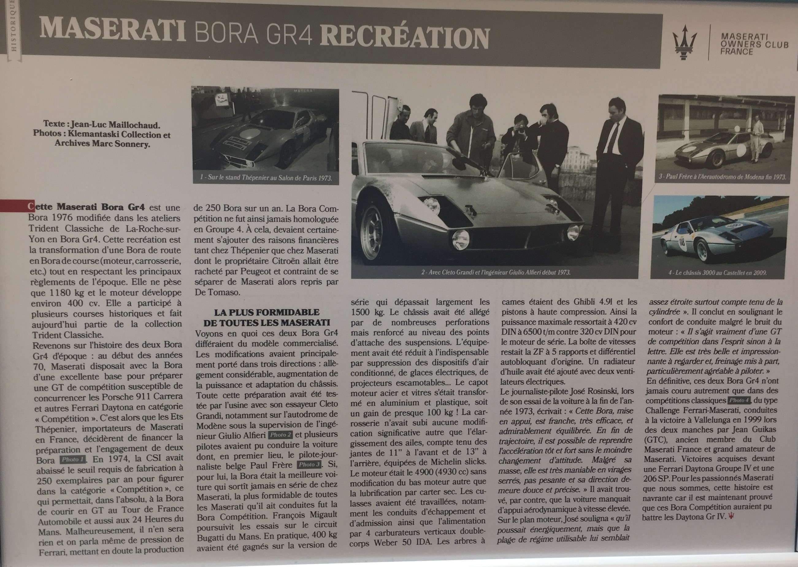 Par l'intermédiaire de notre ami Philippe, une belle planche du Maserati Owners Club France sur la Bora Groupe 4 (cliquez sur l'image pour lire) :
