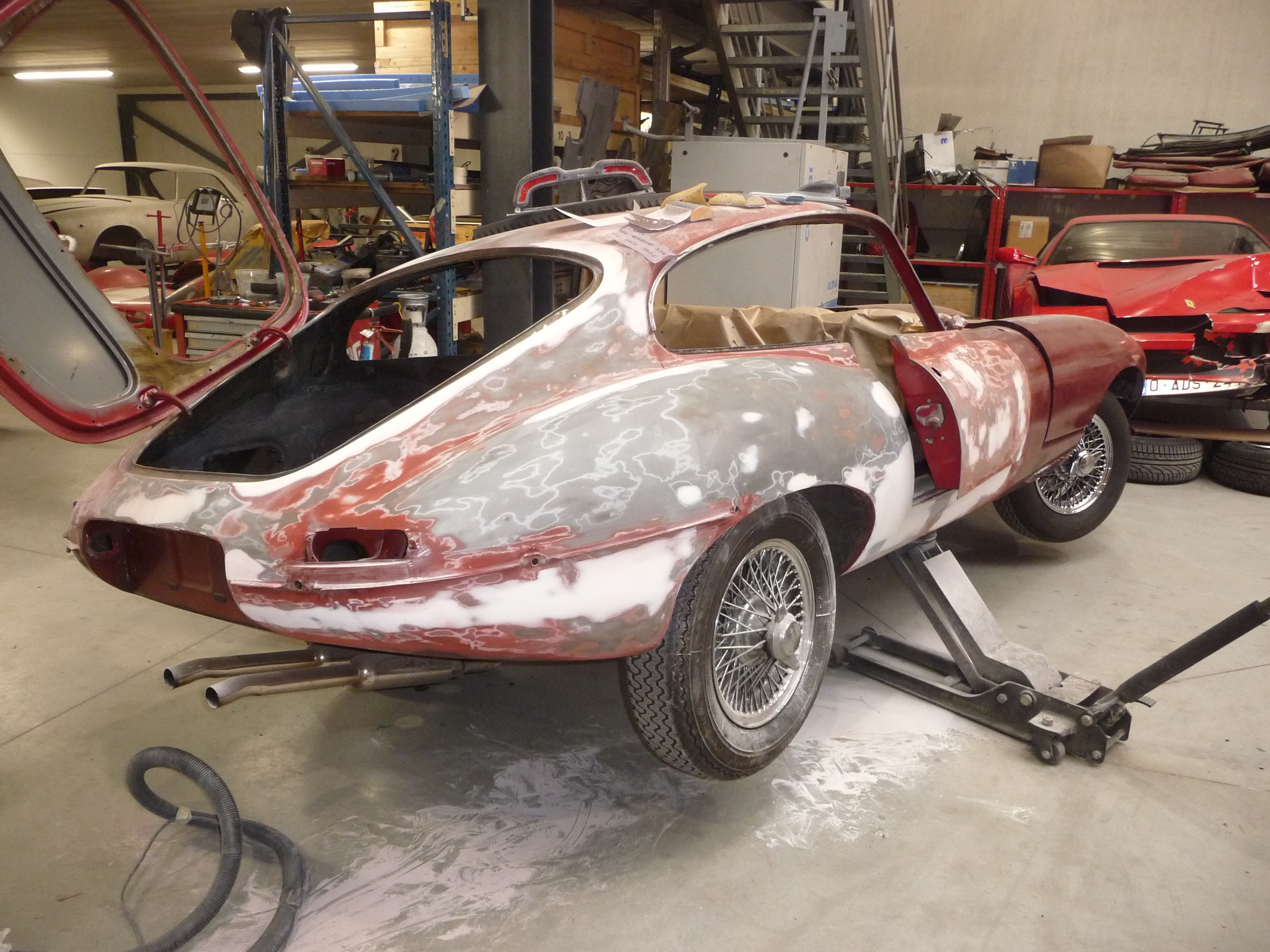Le peintre a aussi poursuivi le travail préparatoire de ponçage de la vieille peinture et d'apprêt sur la carrosserie.